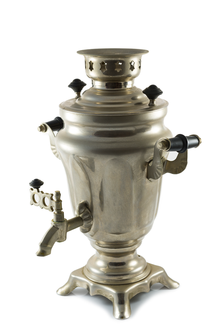 Освещение настроили более равномерно, блики на самоваре мягкие, хорошо передана фактура. Точку съемки чуть приподняли, удачно просматривается крышечка самовара, ее форма. Контуры четкие, предмет отделен от фона. Весь самовар проработан в поле резкости.