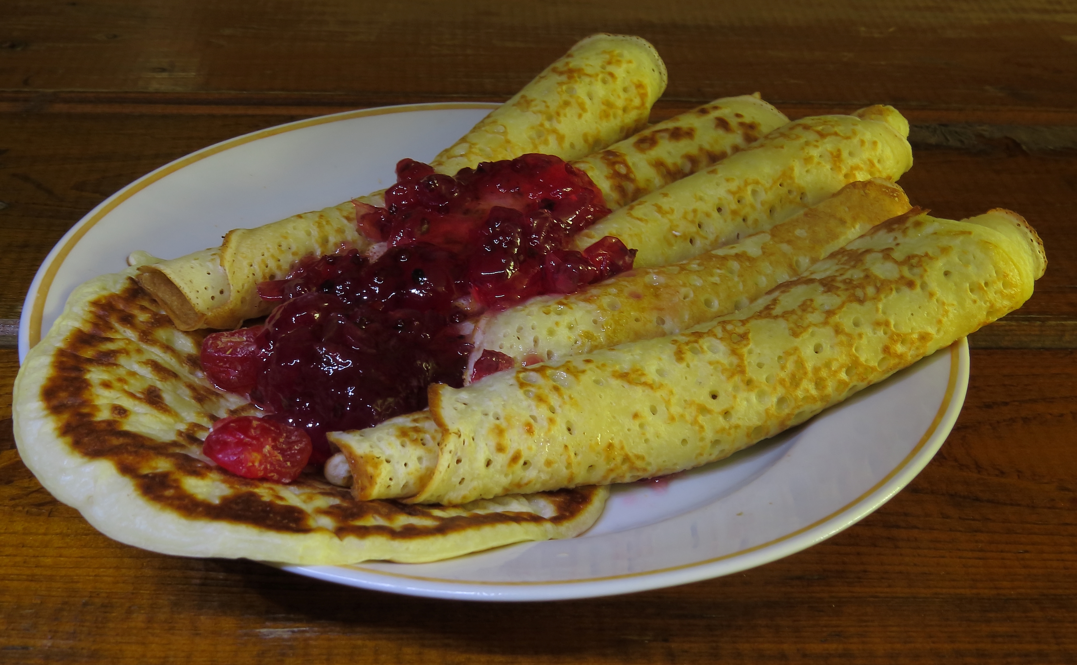 Пришлось опять блинчиков нажарить))) Без дополнительной подсветки фонариком было не обойтись, но немного "поколдовала" с настройками, из окна света больше сегодня, так что и выдержка покороче. Сахарок заменила ягодками сушеной вишни, хоть они и не явно видны, но всё же присутствуют)))))))) Вроде как логичней с ягодками, хотя визуально мне сахарок нравился больше. Фон тоже заменила и точку съемки опустила. В общем, поработала над ошибками и так как хотелось чего-то новенького, то внесла ещё и небольшие изменения.