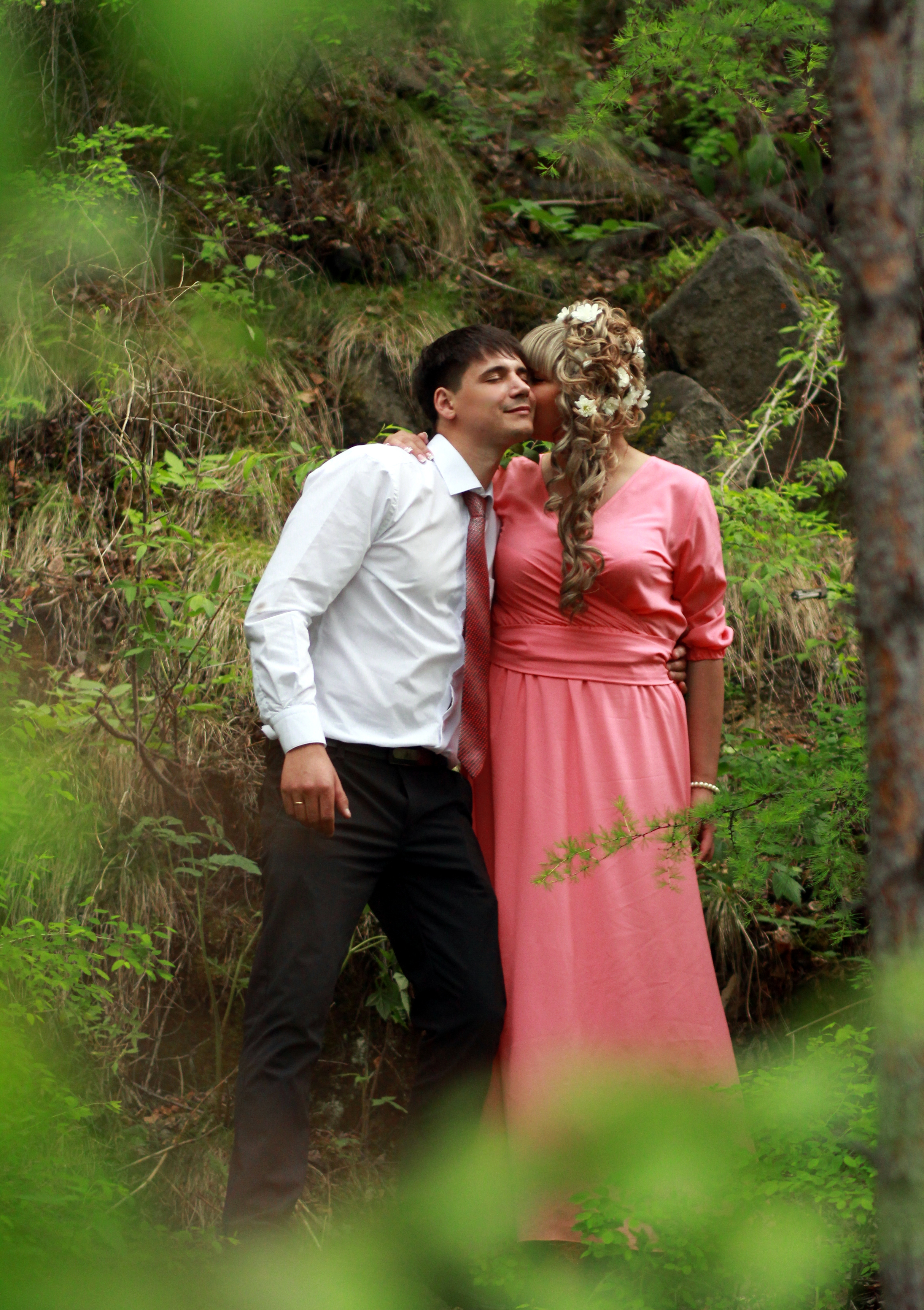 Симпатичный снимок, интересно поработали с ракурсом - передний план смотрится здорово и отлично обрамляет пару. Фон выбрали замечательный, фотография красивая и живописная.