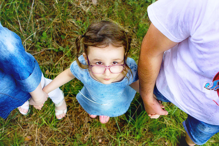 Руки родителей добавляют смысловую нагрузку, симметрию, которая позволяет дополнительно акцентировать наше внимание.