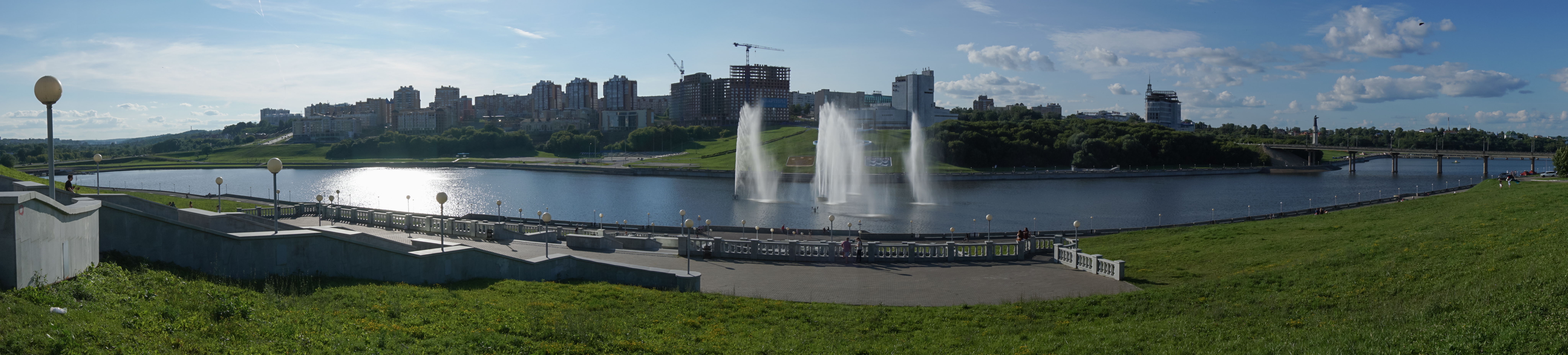 В плане технического исполнения всё сделано верно, очень хорошо передано ощущение пространства за счёт высокой точки съёмки, светлое небо и высокий контраст подчёркивают формы и силуэты дальнего плана, центральная компоновка создаёт хороший акцент на фонтанах, кадр хорошо детализирован, продолжайте в том же духе!