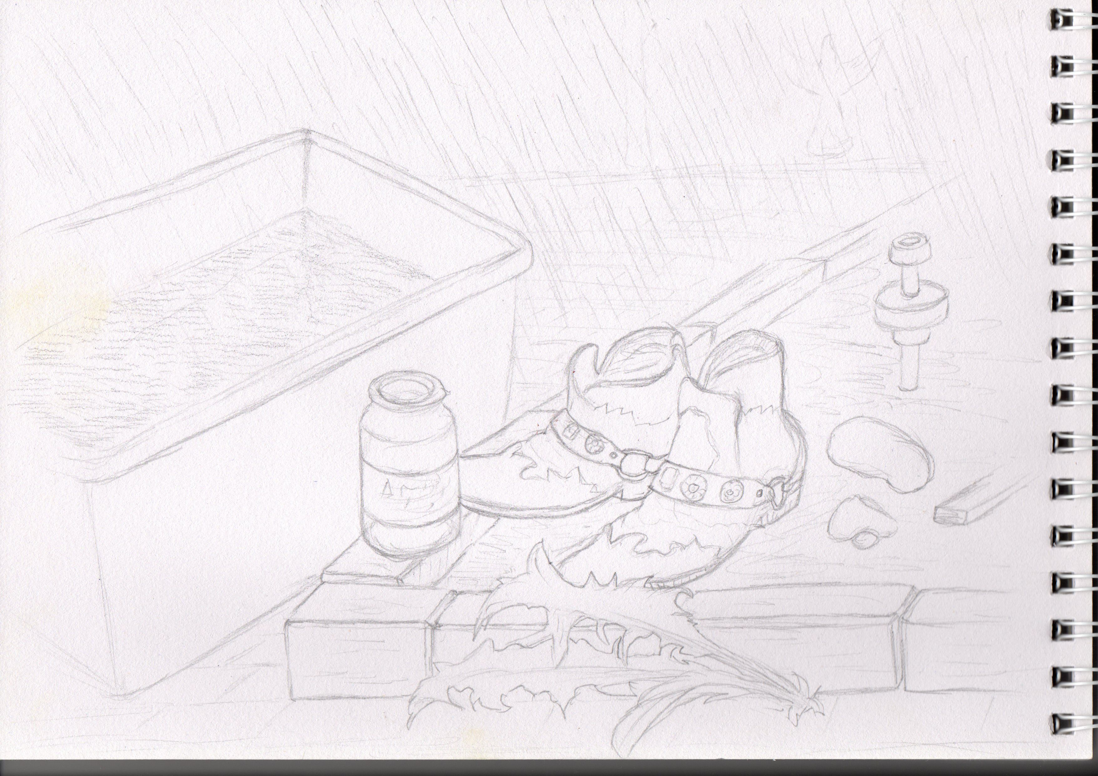 Спасибо за подсказки. Добавил линии дождя и воду в ведре. С водой,оказывается, все довольно просто... если знаешь - как :) Хотя надо еще потренироваться, поэкспериментировать.