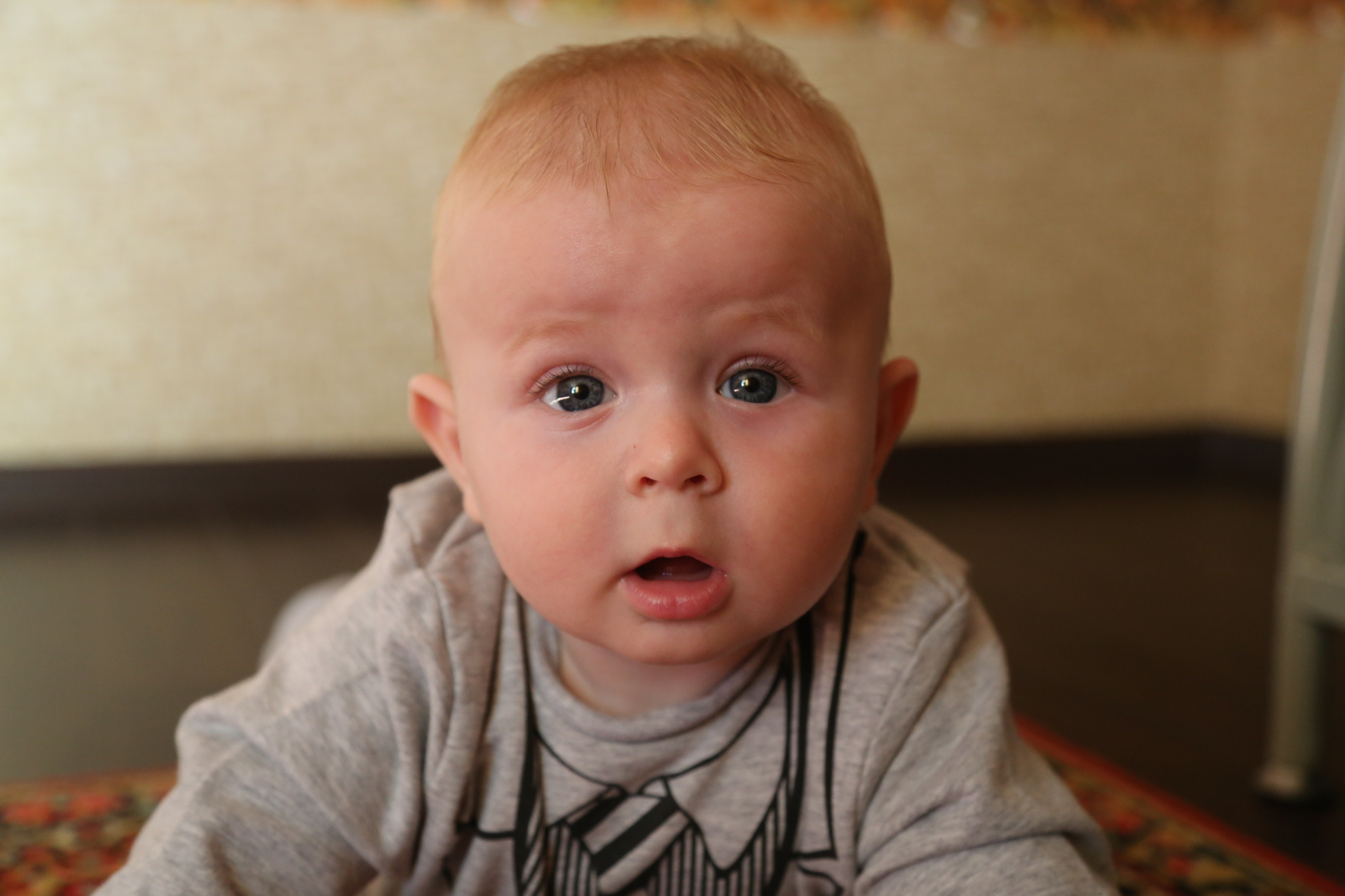 Какое милое выражение личика внука поймали! Взяли удачную точку съемки, она помогает без искажений посмотреть на ребенка как будто его же глазами, мы проникаем в недоступный нам мир детства.