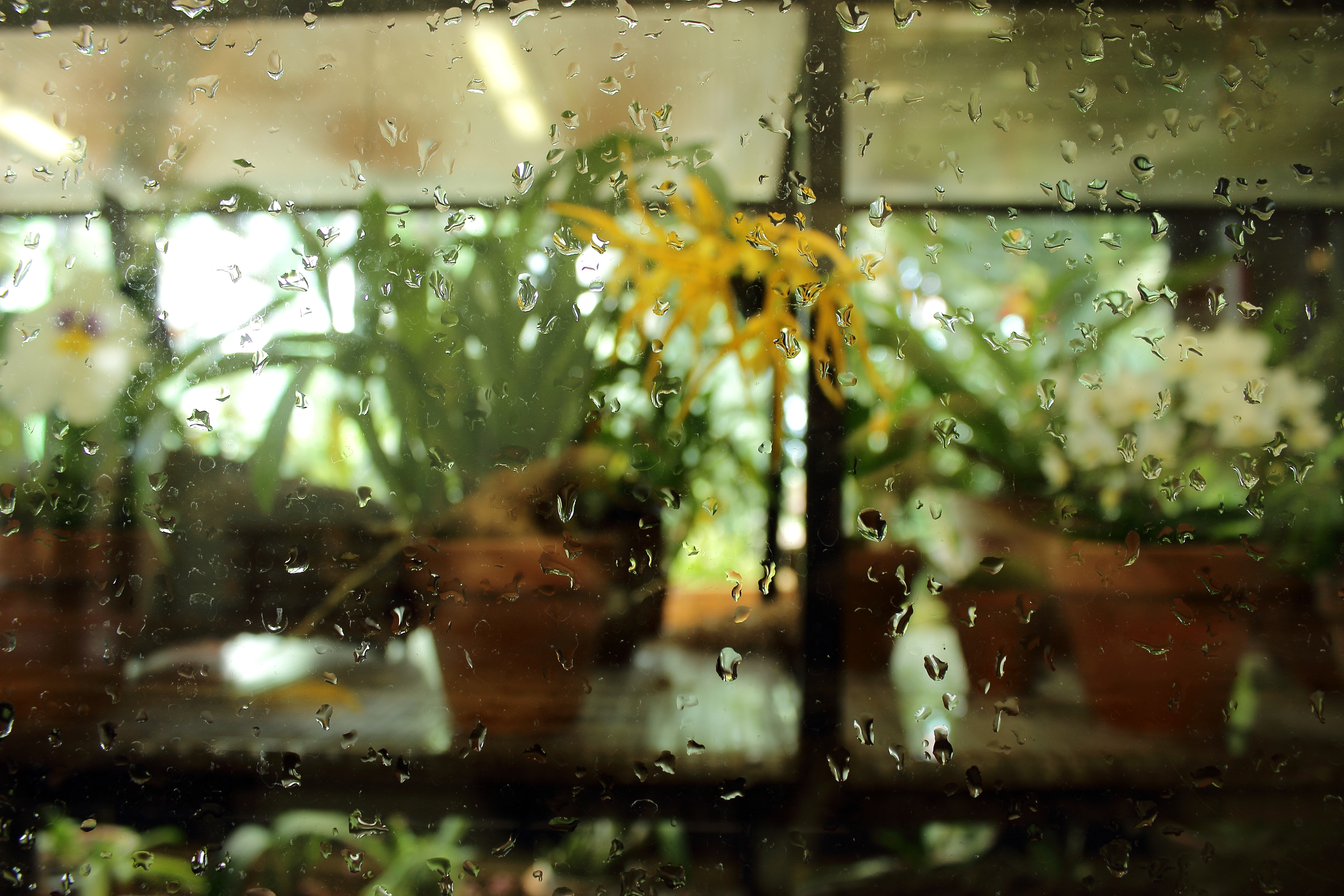 Здравствуйте!Погода исключительно хорошая,к выполнению задания непригодна)Поэтому я решила сделать погоду сама.Оранжерея в Ботаническом Саду сквозь влажное стекло.