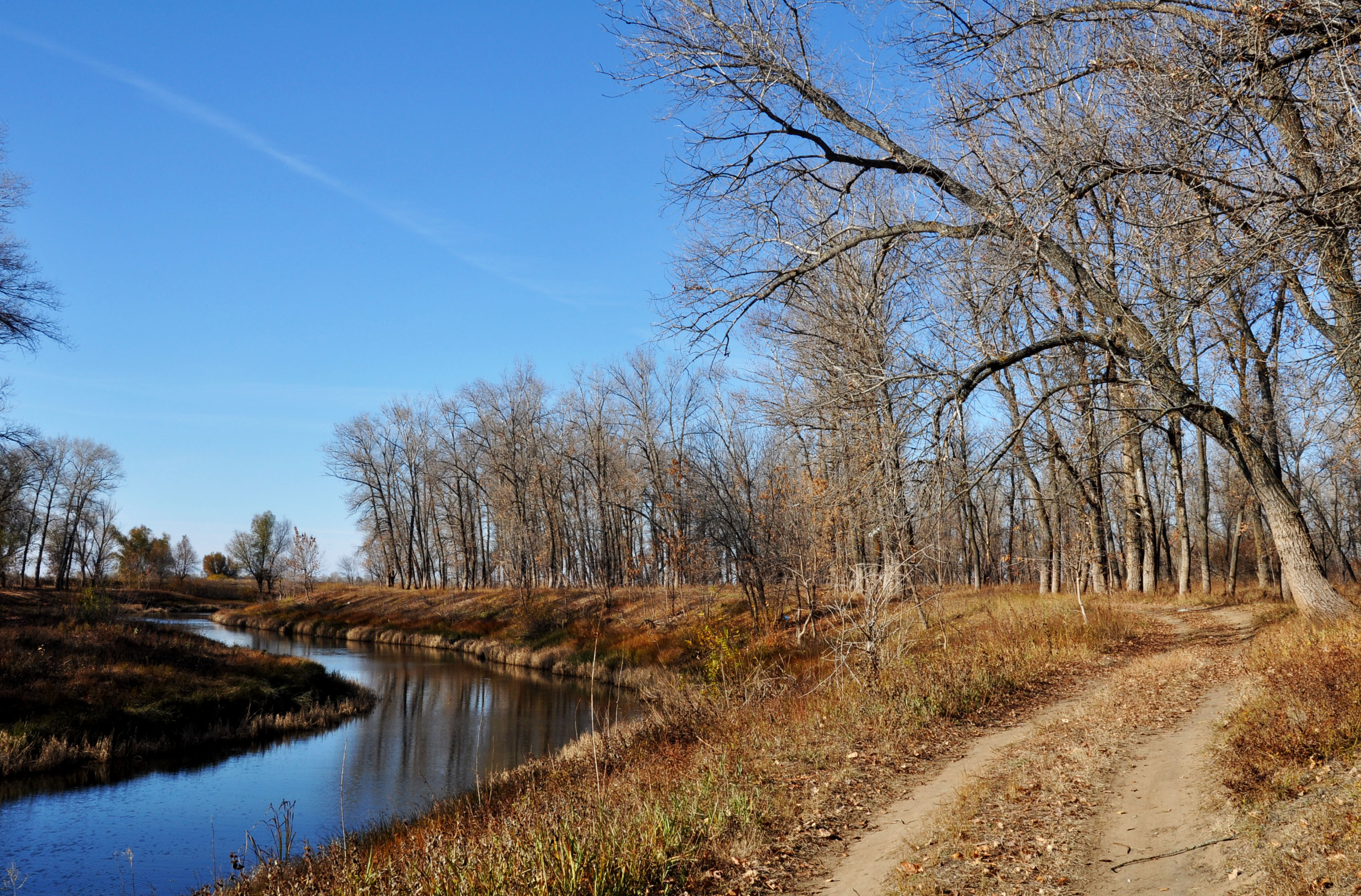 Пейзаж. Понравилось при выборе сюжета две дорожки (тропинка и река), имеющие S-образную форму, а так же получила светлую и темную часть кадра.