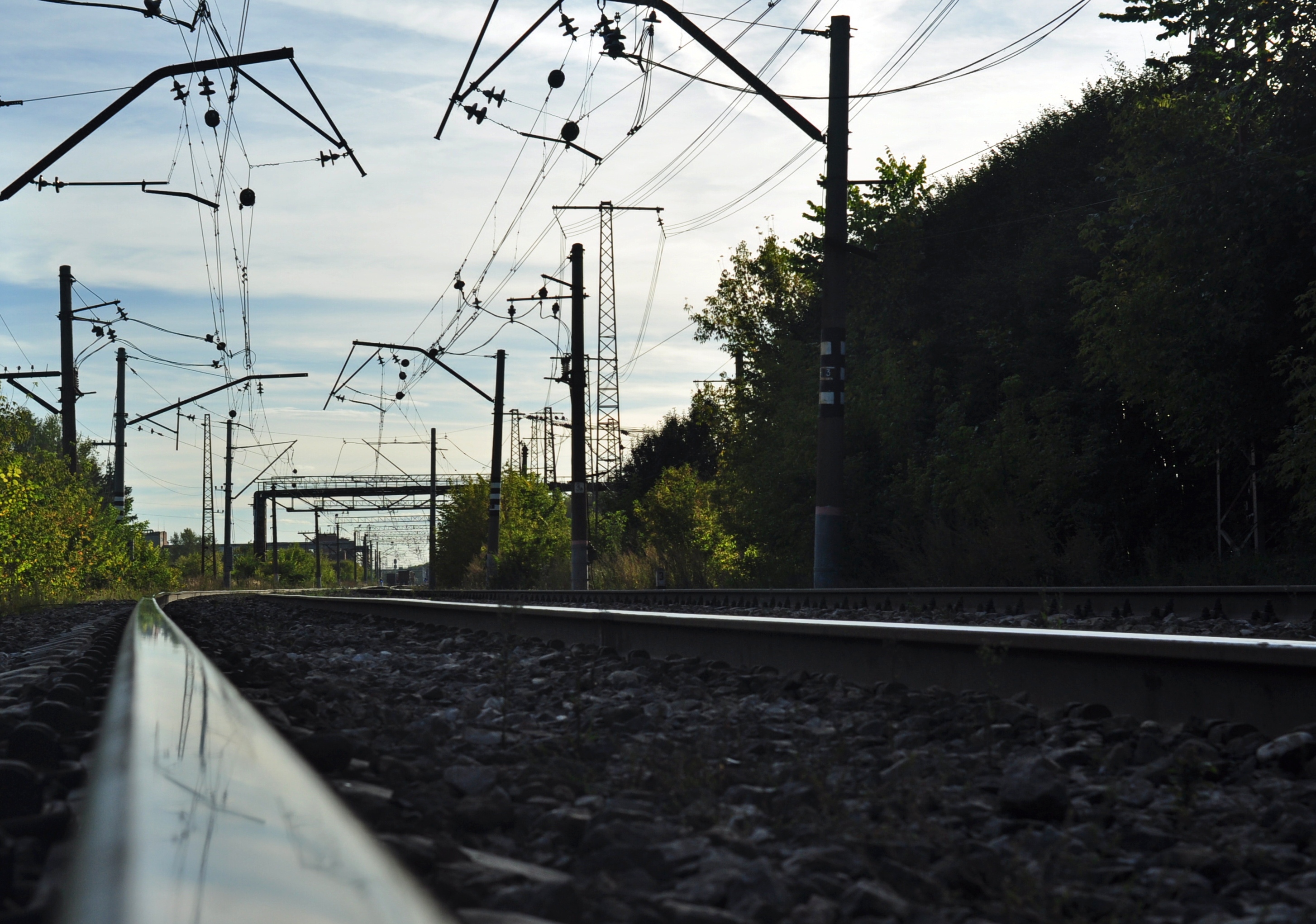 Перспектива на снимке выражена хорошо - карточка объемно смотрится. Тут и масштабная перспектива читается - предметы по мере удаления от камеры кажутся мельче. Ну и линейная перспектива имеется - рельсы вдаль убегают, сходятся. Ну и с многоплановостью поработали! Есть на фото передний план - металлический кусочек рельсы, средний план - столбы ЛЭП, дальний план есть.