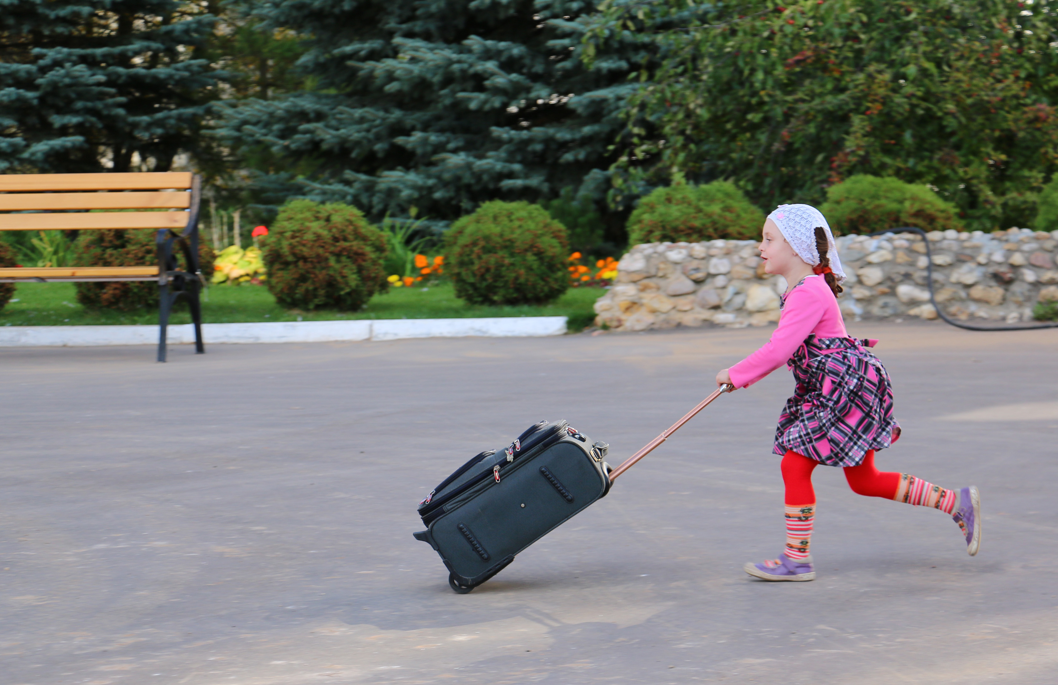 Добрый день! Снимала с проводкой. Дети паломников, приехавших в Пафнутьев-Боровский монастырь, заскучали и стали бегать с чемоданами:) Вот такое получилось движение.