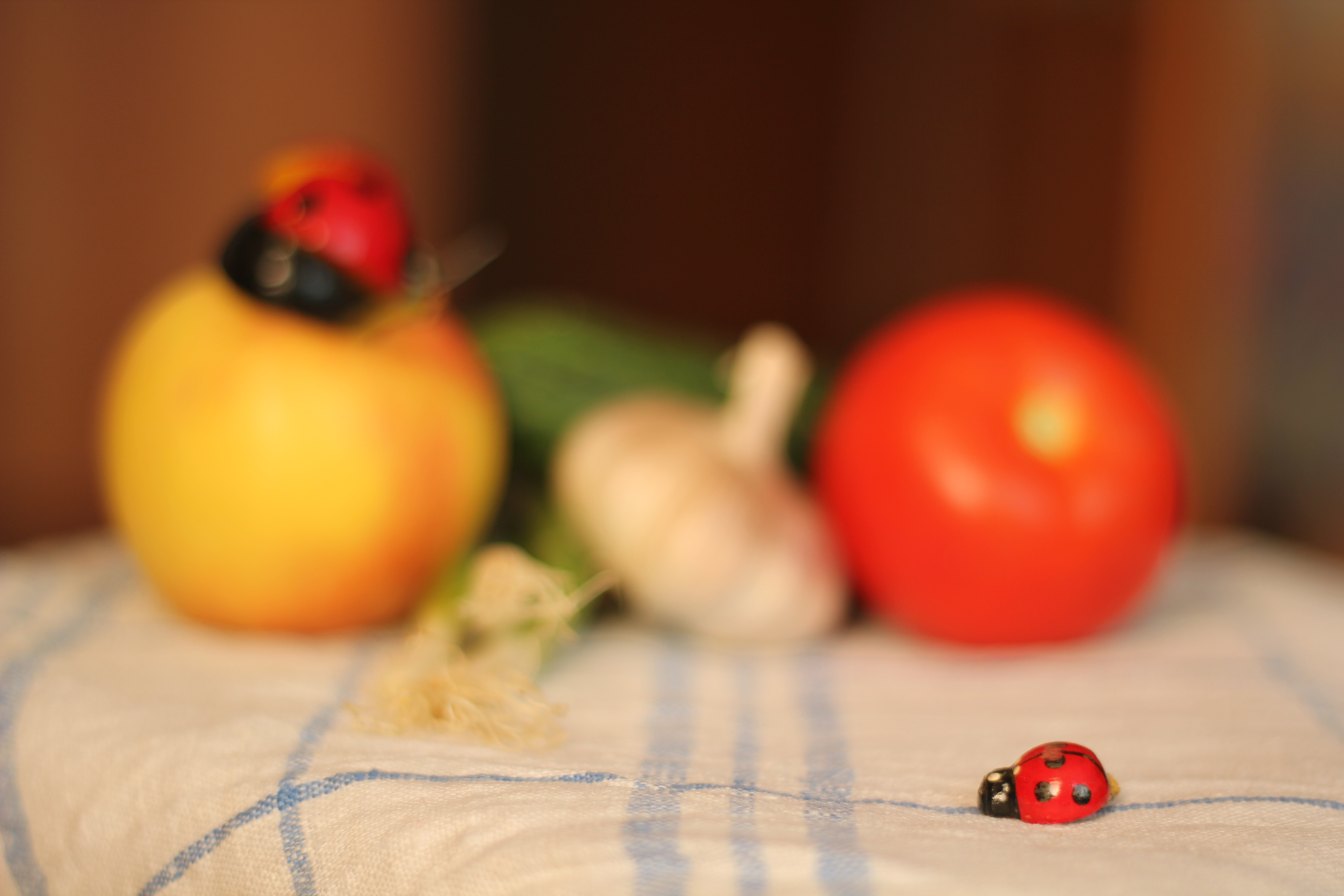 Широко открытая диафрагма позволила вывести в зону резкости лишь малую часть снимка, ту плоскость на которой находится божья коровка.