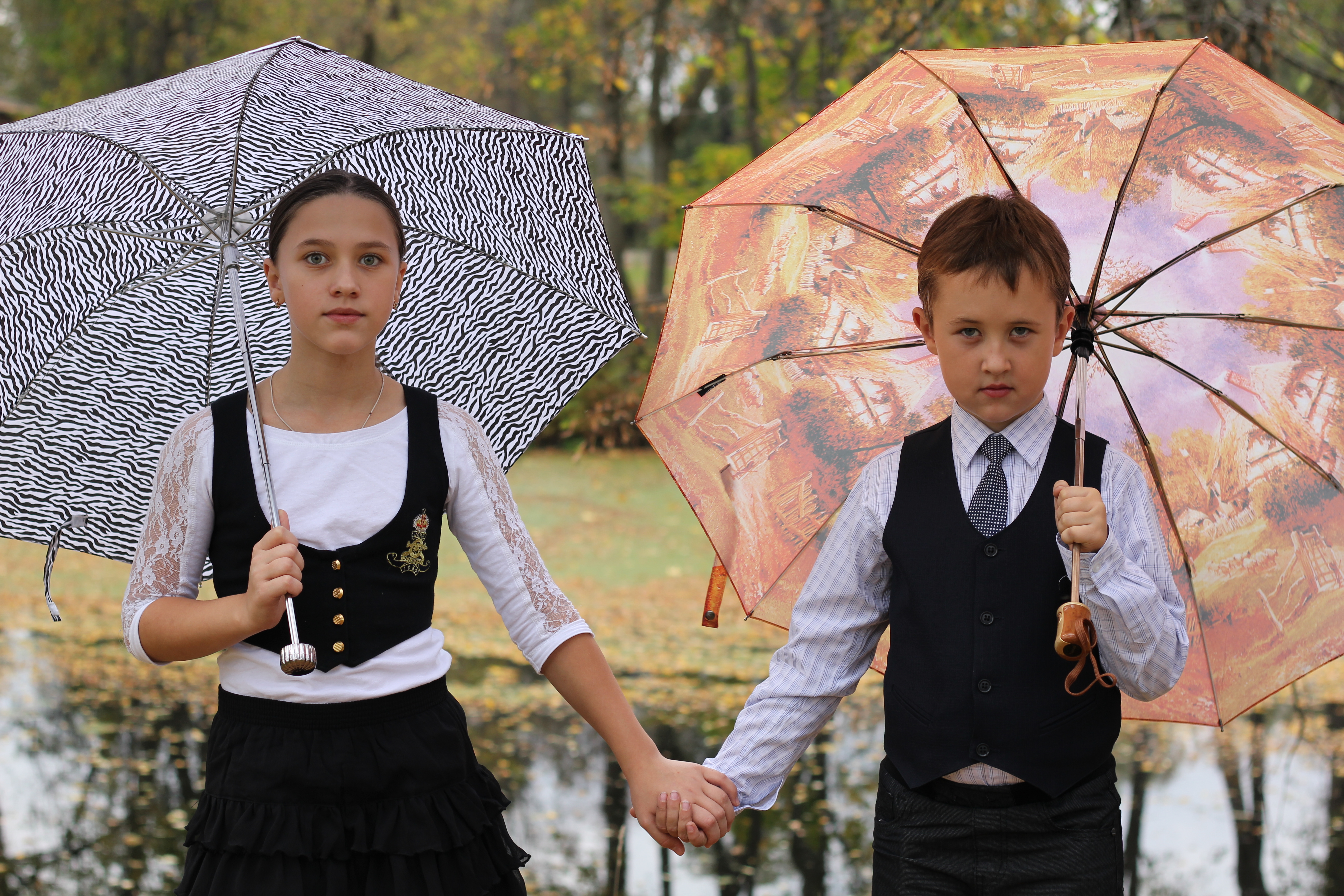 Зонтики становятся своеобразными рамочками, помогающими отделить ребят от хотя и размытого, но сложного фона (за счет сильной детализации на нем, наличия мелочей). Ну а фон сам по себе красивый!