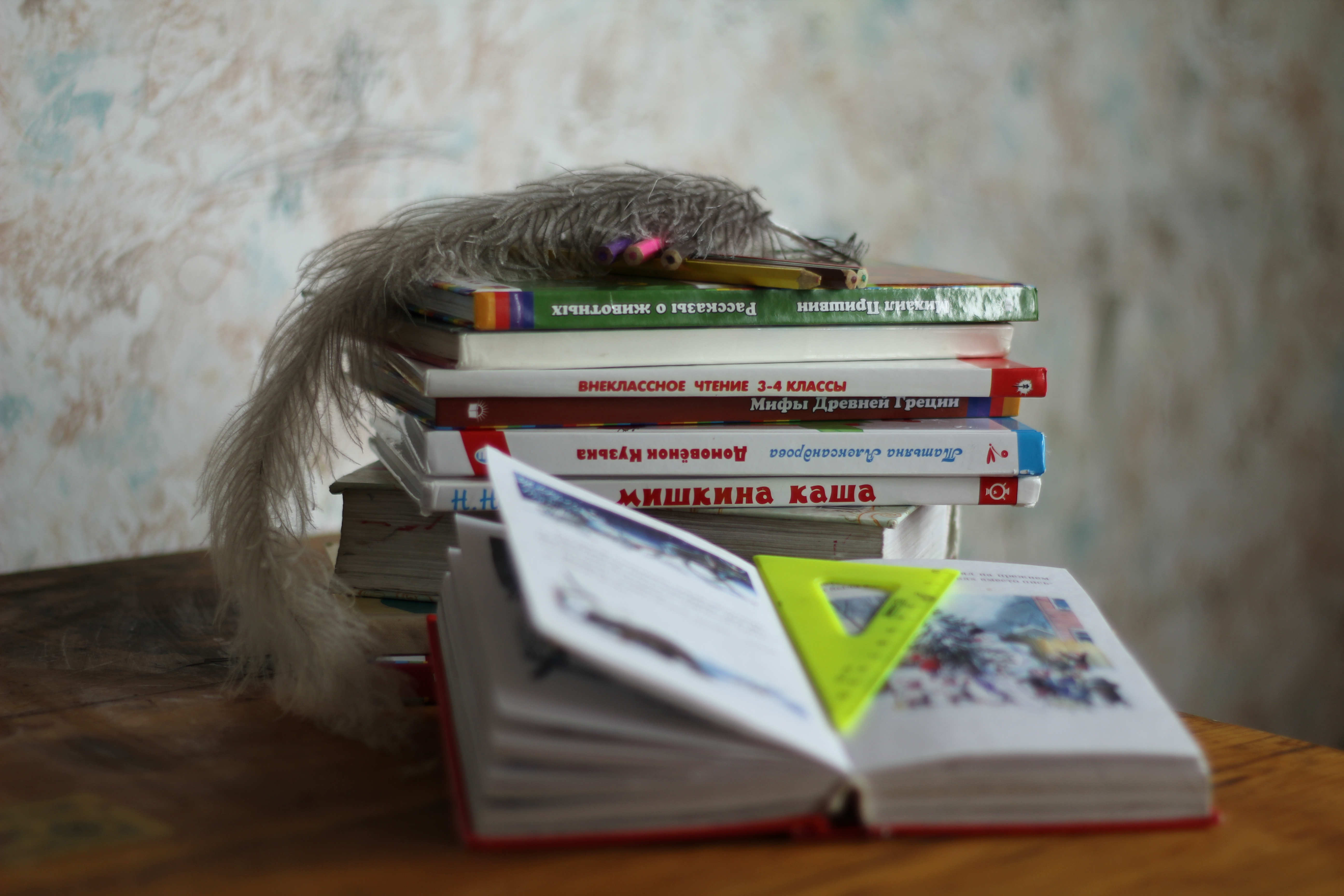 Замечательный натюрморт! Здорово, что снимали при естественном свете, расположив композицию таким образом, что бы она освещалась сбоку, а не по оптической оси. Так, свето-теневой рисунок позволяет получить хороший объем. Название книг подсказывают о примерном возрасте ребенка, вот бы ещё внести предметы, олицетворяющие гендерную принадлежность. Резинки для волос, или рогатку.