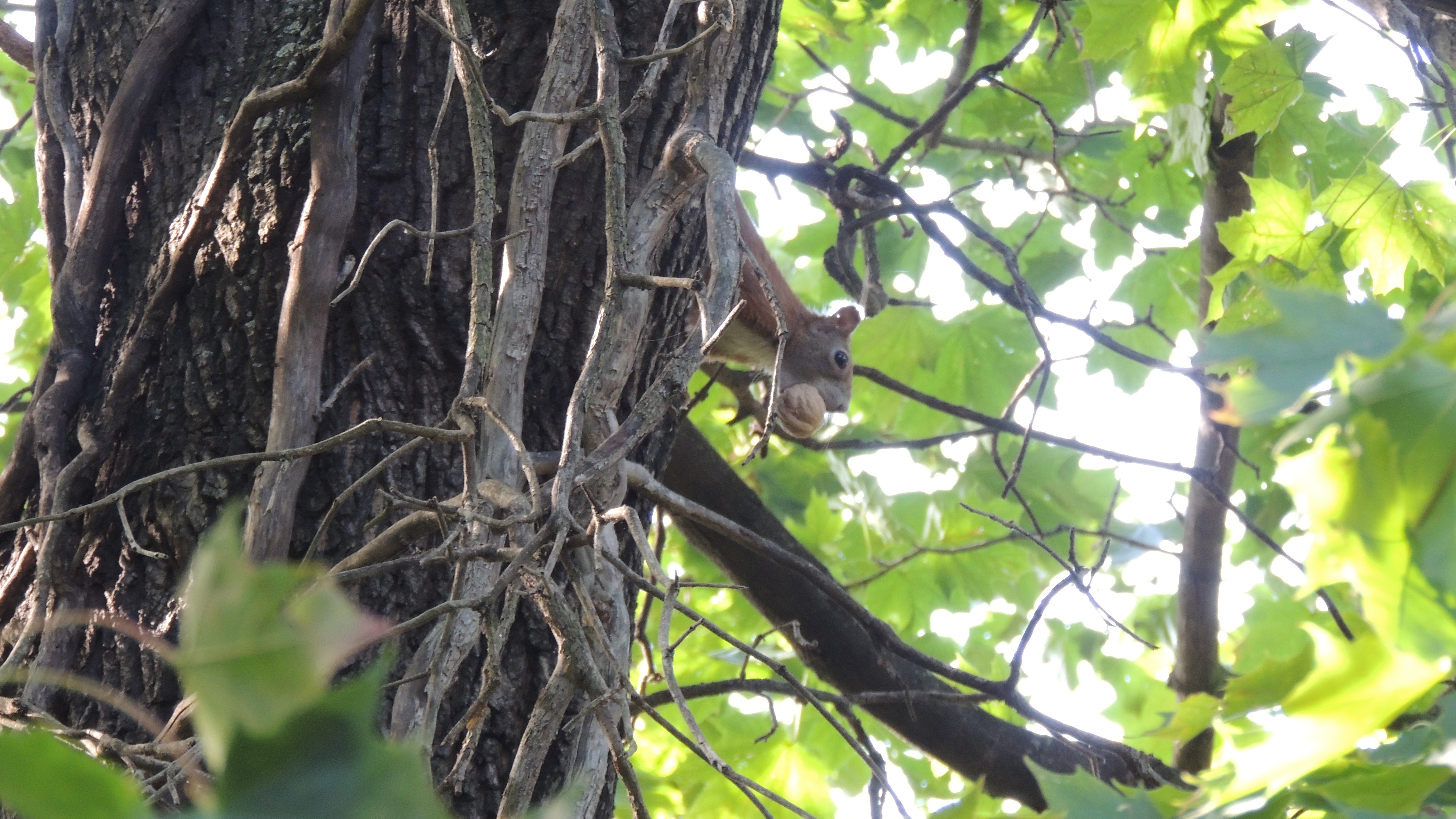 Попыталась с помощью кадрирования выделить белку. Кроме того, фотографии была добавлена насыщенность.