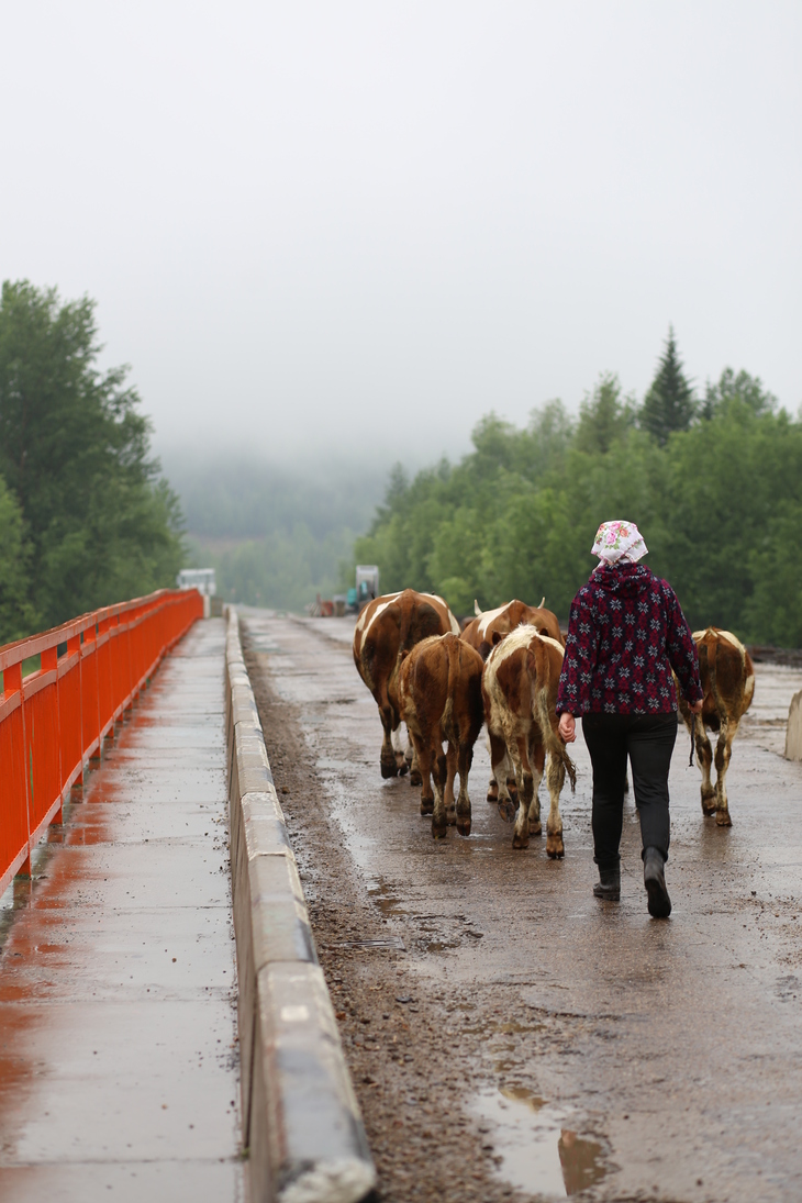 На снимке мост с пастушкой и ее скат. Женщина судя по всему повела коров пастись. Главную роль здесь выполняют коровы и женщина. Было раннее утро, на заднем плане виден туман. Честно говоря фото сделано месяц назад, но я решила загрузить эту работу, т. к. хочу уточнить правильно ли я размышляю на тему правило третьей. На середине кадра дорога уходит в даль, по сути она делит кадр пополам, однако, вдали сопка, а уже над ней небо, т. е. горизонт на снимке находится в третей части, между сопкой и небом. И момент с главными героями, они берут начало в третьей части кадра, но доходят до середины. Является ли это ошибкой к данной теме?