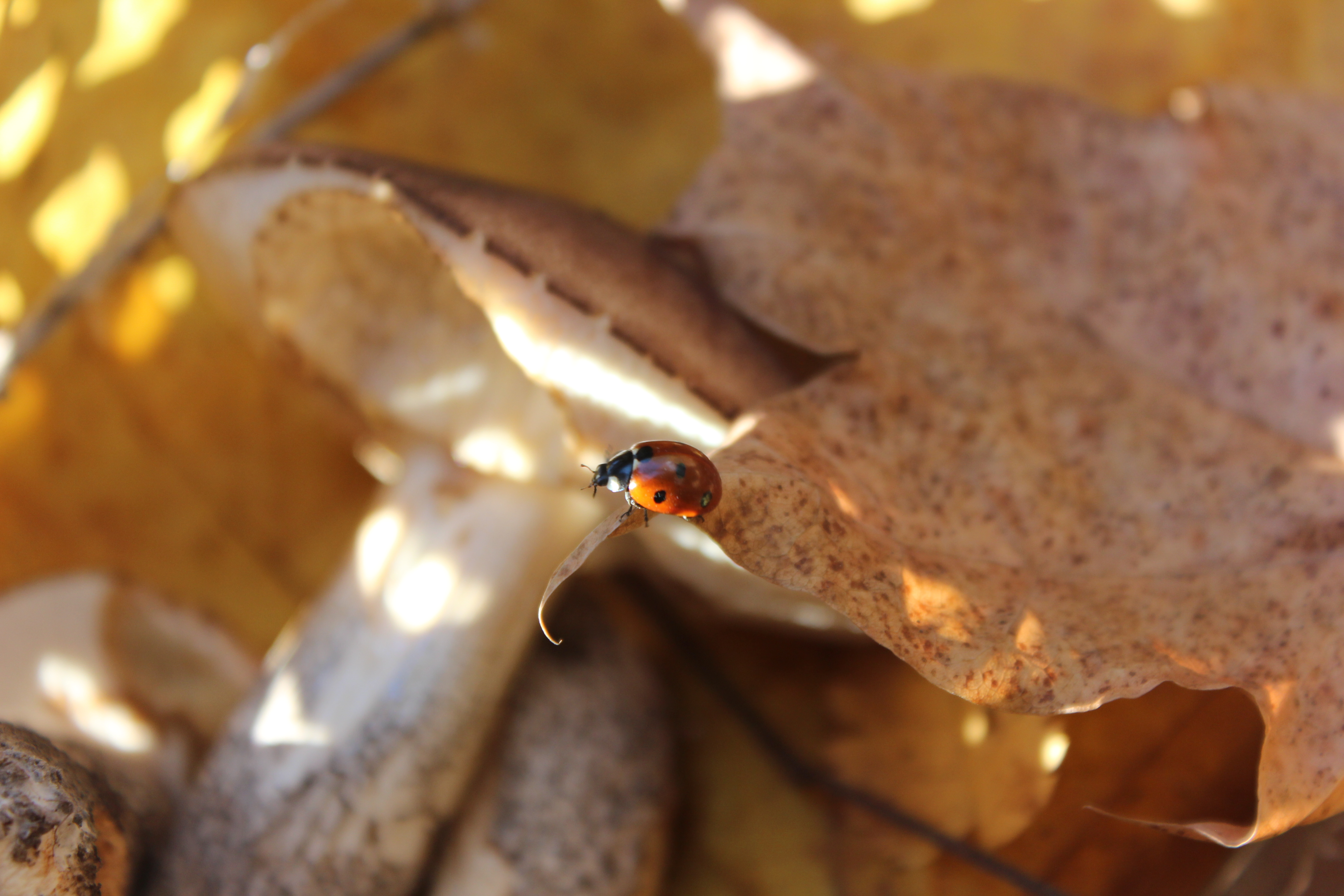 Замечательный снимок! В кадре интересное освещение, пробивающийся сквозь растительность жёсткий солнечный свет создаёт контрастный свето-теневой рисунок со световыми пятнами. Божья коровка гармонично вписывается в пространство кадра за счёт центральной композиции и является главным объектом съёмки. Малая глубина резкости придаёт снимку больший визуальный объём и отделяет божью коровку от заднего плана, продолжайте в том же духе!
