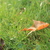 Красиво смотрятся желтые листики на зелёной травке, для этой фото фотоаппарат опустила низко к земле