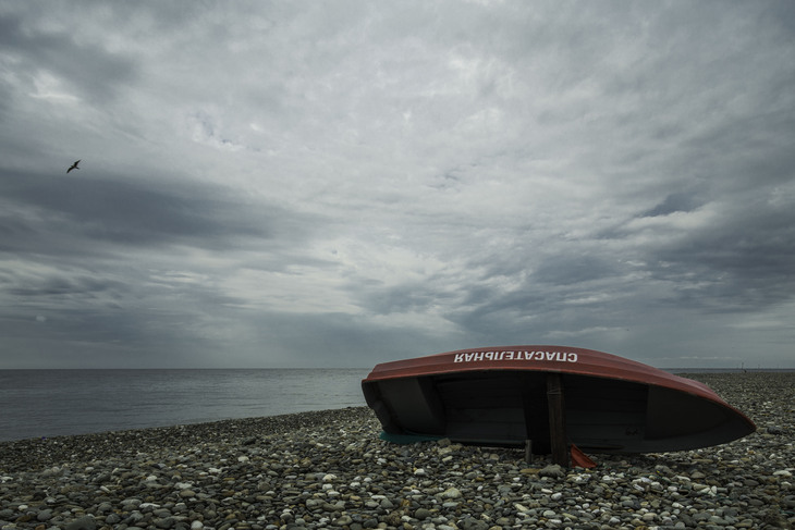 Очень красивый вид! С впечатляющим центром внимания в виде лодки. Она выделяется активным тёплым цветом на фоне морского пейзажа и явно доминирует в кадре.