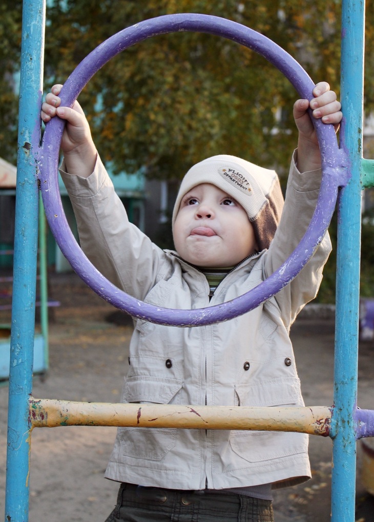 С девочкой доработать не получится,-она далеко.Поэтому-фото сыночка с недавней прогулки. Артём очень любит лазить по лестницам!Даже язычок от удовольствия торчит) Глазки немного недотягивают до линии третей,но не хочется сверху подрезать карточку.Поэтому оставила пространство сверху (в направлении взгляда)как есть.