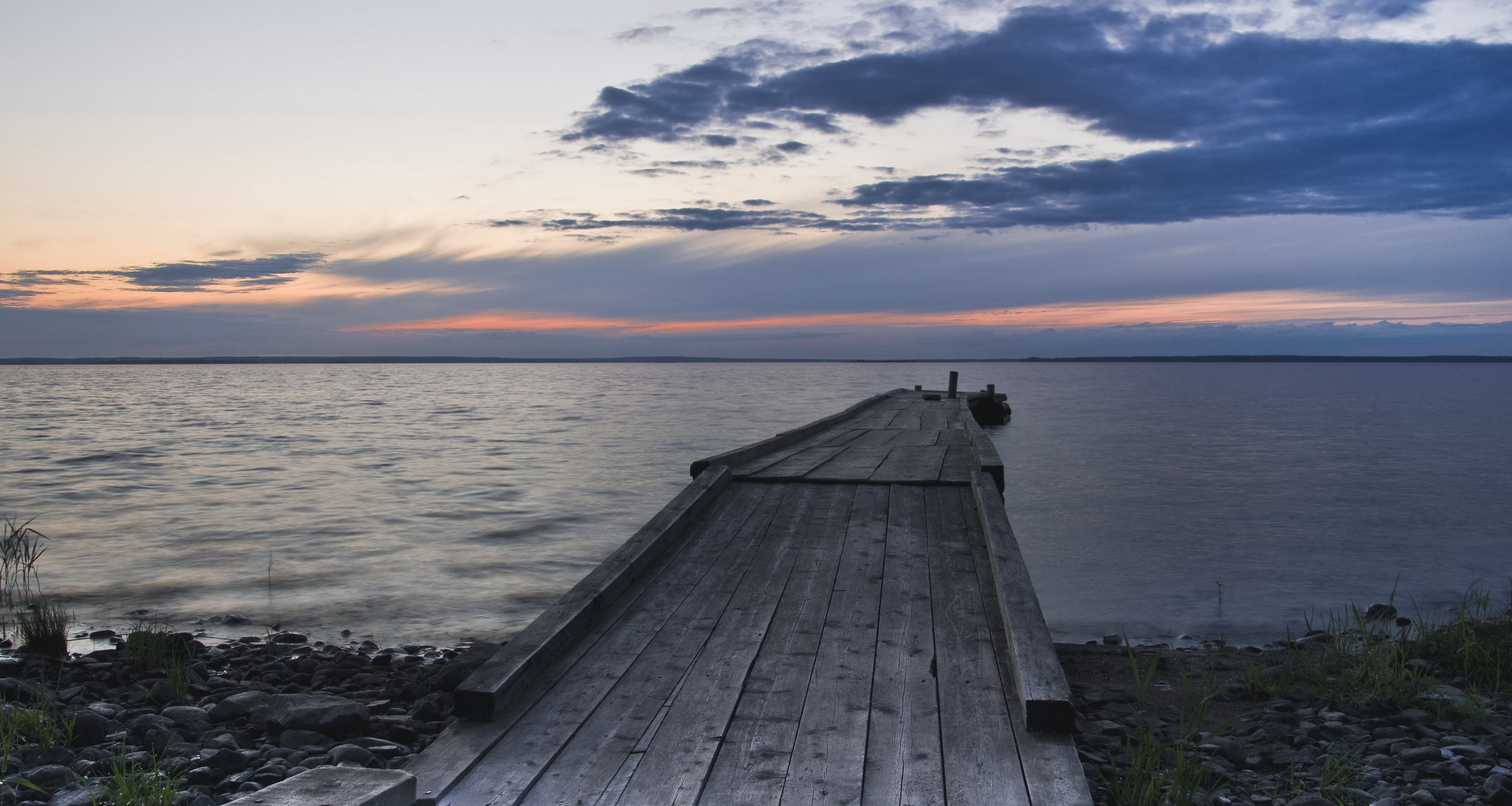 Доброго вечера. Кадр причала на одном из островов Карельского озера. Снимала ночью (в 00:43), со штатива. Сразу оговорюсь, что кадр уже тогда мне виделся в ч/б (он в ч/б и смотрится лучше!), но вот сейчас его обработала градиентами и думаю, что в цвете он тоже имеет право на существование. Помимо градиентов использовала корректирующую кисть, тоновую кривую, кадрирование и светимость тонов. Жду вашего вердикта, господа педагоги!))