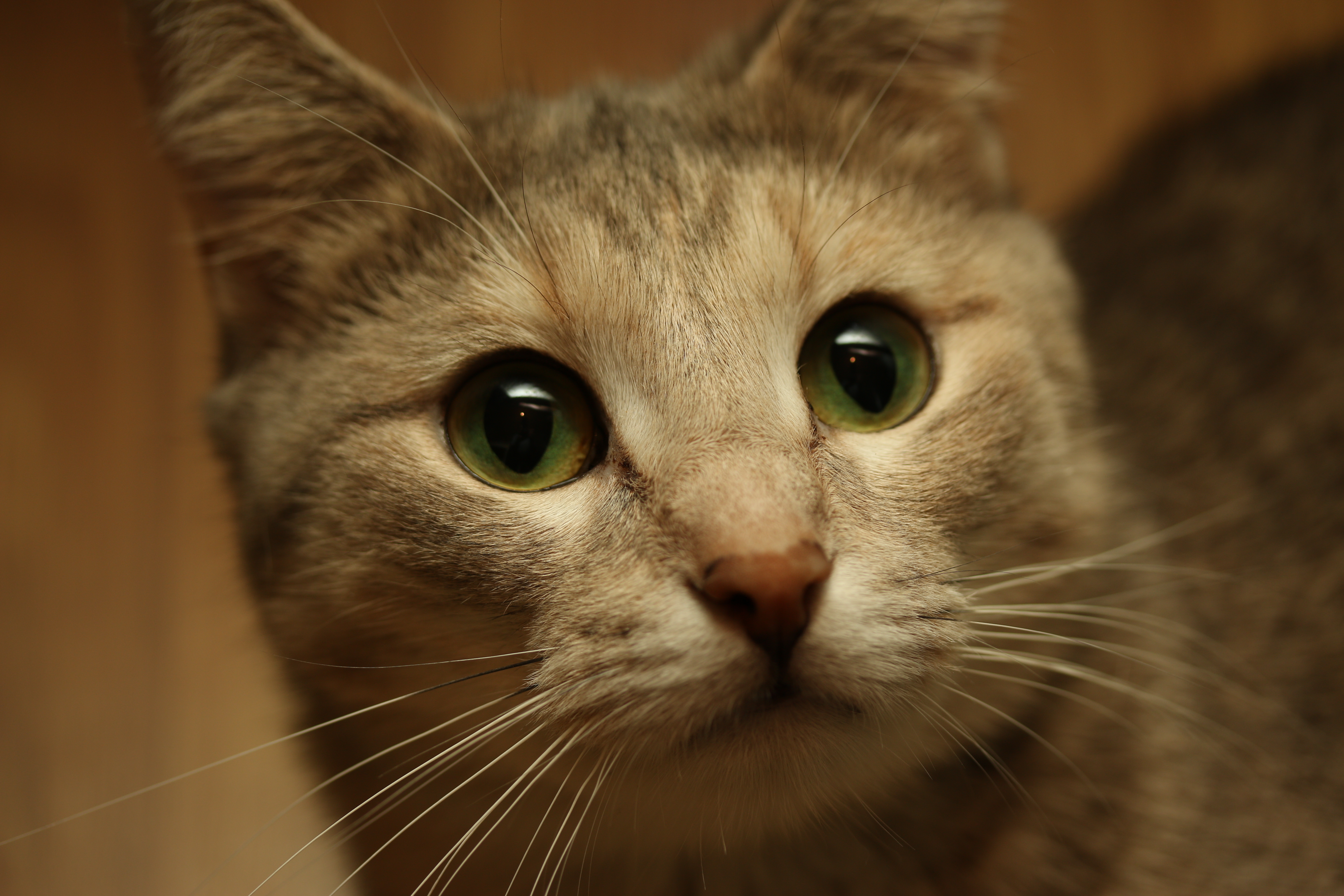 Свет вспышки мягкий, рассеянный, что положительно отразилось на мордочке кота)
