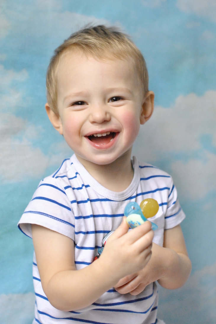 Поясной портрет был сделан днем, без вспышки, свет от окна падает слева. Чтобы избежать шевеленки, пришлось даже в дневное время повысить исо до 1600, а диафрагму открыть до 2,5, поэтому рука с пустышкой получилась уже не в фокусе. Из проблем во время съемки было только ограниченное пространство комнаты)