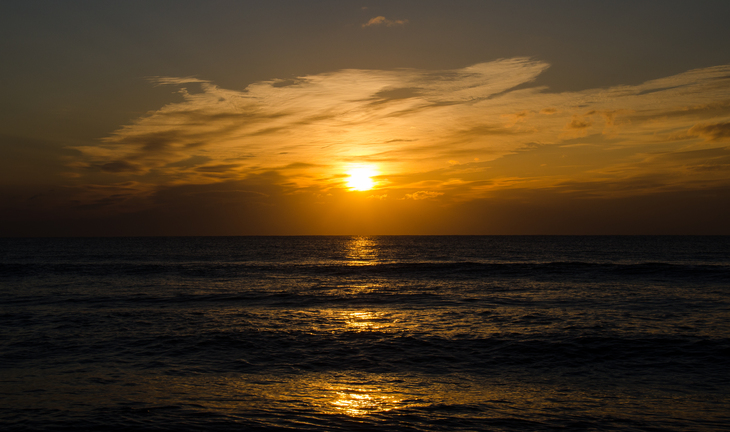 Солнце довольно аккуратное, интересно подсвечивает тонкую структуру облаков, и подчеркивает фактуру воды. Это и акценты, и теплый цвет, влияющий на настроение.