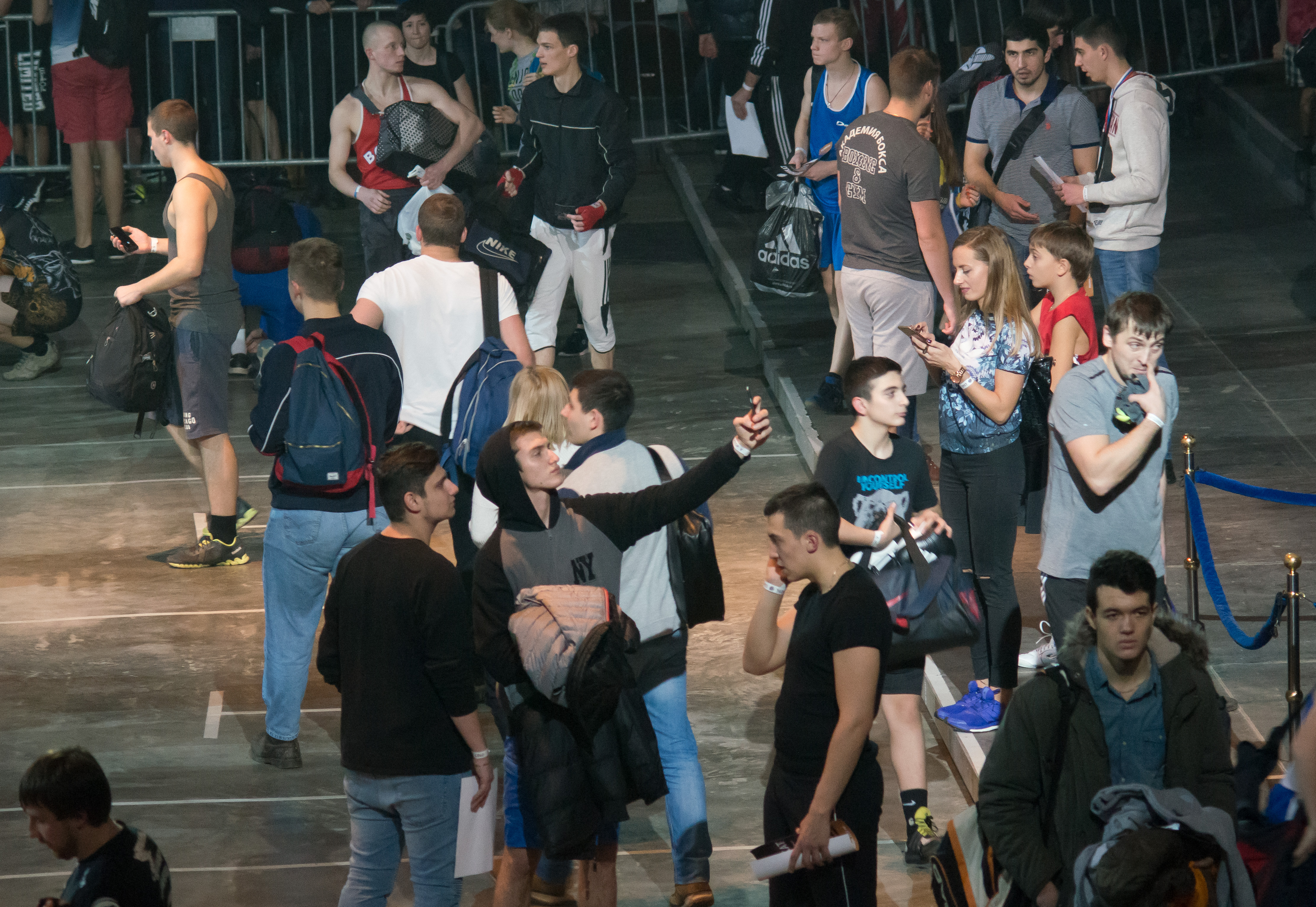 Фотографии с открытой тренировки Флойда Мейвезера в Москве. Перед началом тренировки было очень много селфи) Света не было, пришлось ISO задирать (шумы).