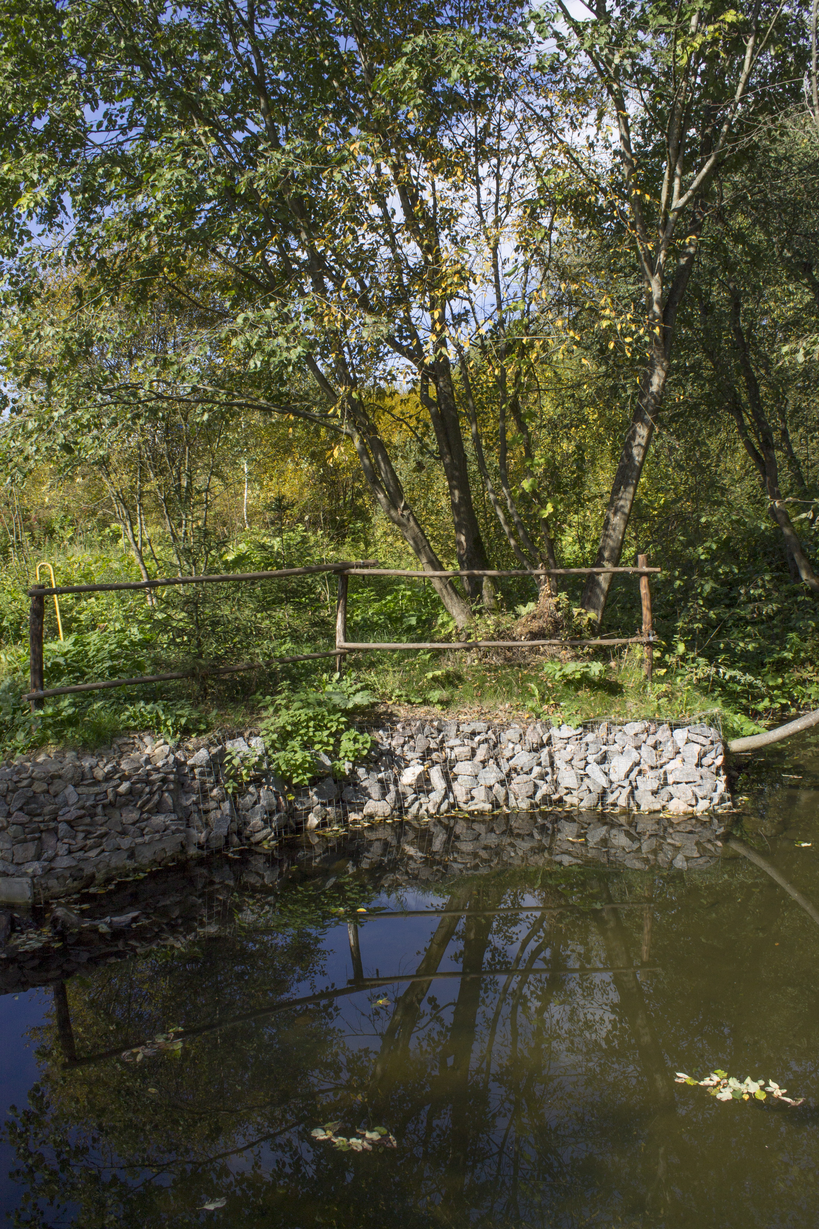 Пейзаж живописный, очень приятно смотрится симметричное отражение в воде.