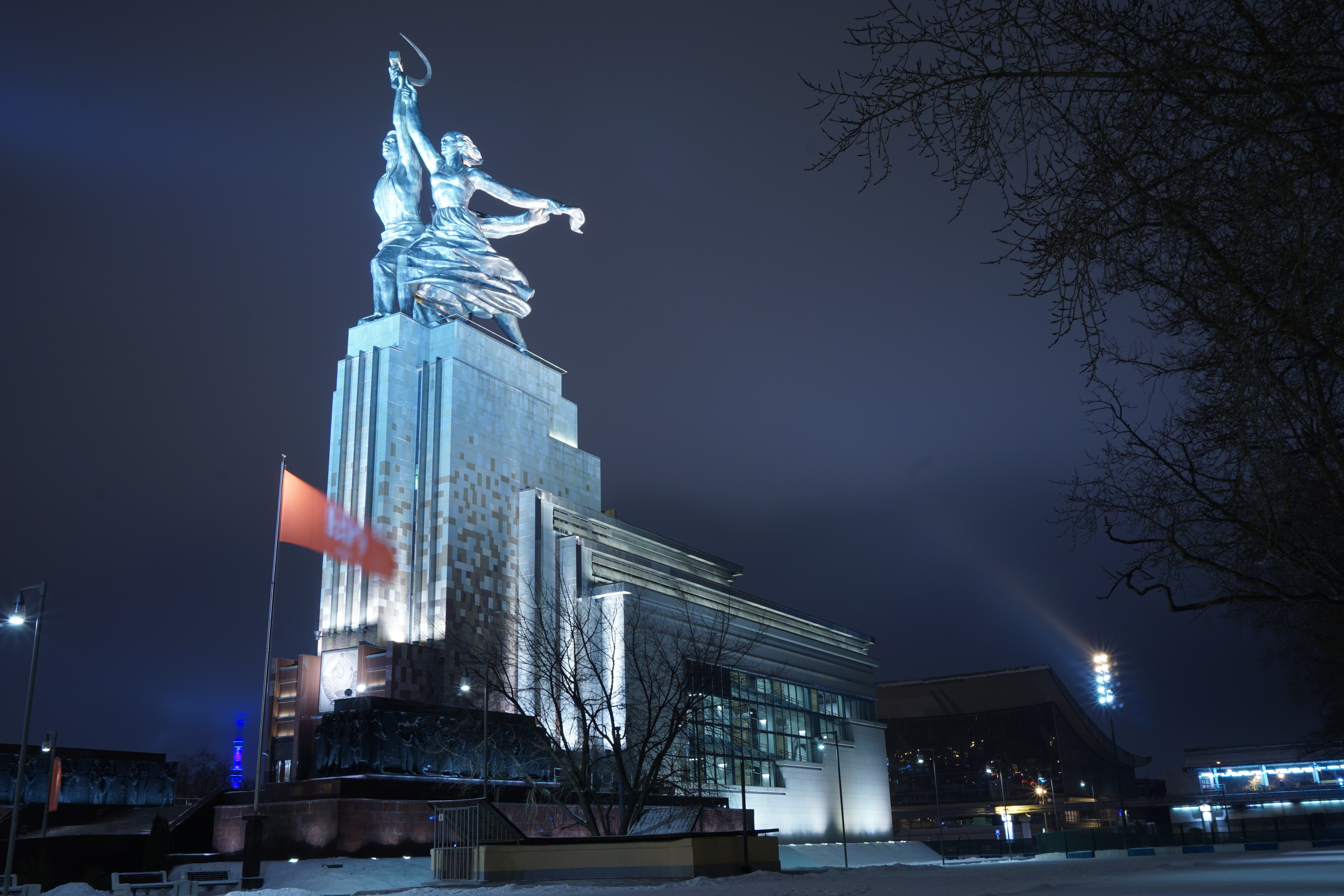- здорово выглядит холодная подсветка монумента, она создаёт сильный цветовой акцент в кадре.