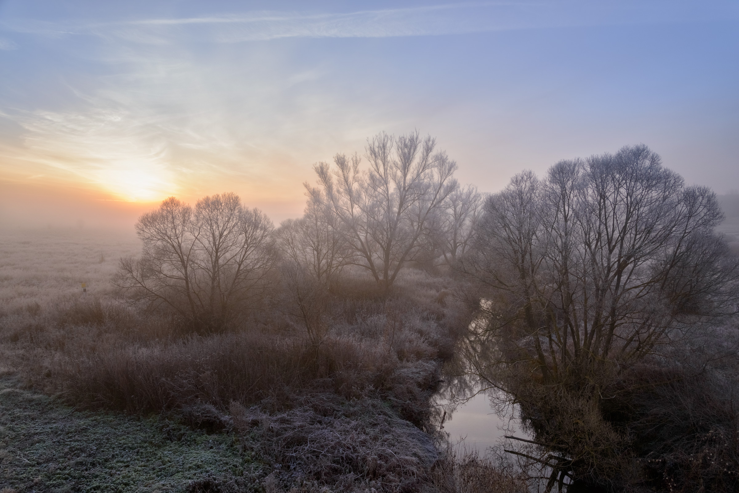 О зиме и снеге с морозцем можно только мечтать. Погоду зимней можно назвать только, если обладать очень бурной фантазией. В конце декабря у нас льет как из ведра. По этому кадр с одного морозного утра где то на просторах Брянской области.