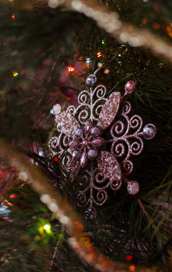 Доброго времени! Новогодняя снежинка. Диафрагма открытая, чтобы размыть фон и выступающие обрамлением новогодняя мишура.