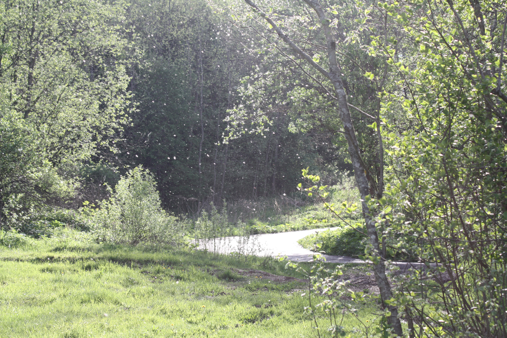 Фотография сделана летом на природе.Хотелось передать атмосферу природы: зелень, солнечный свет, падающий пух. (Зимой никак не могу снять пейзаж, быстро темнеет)