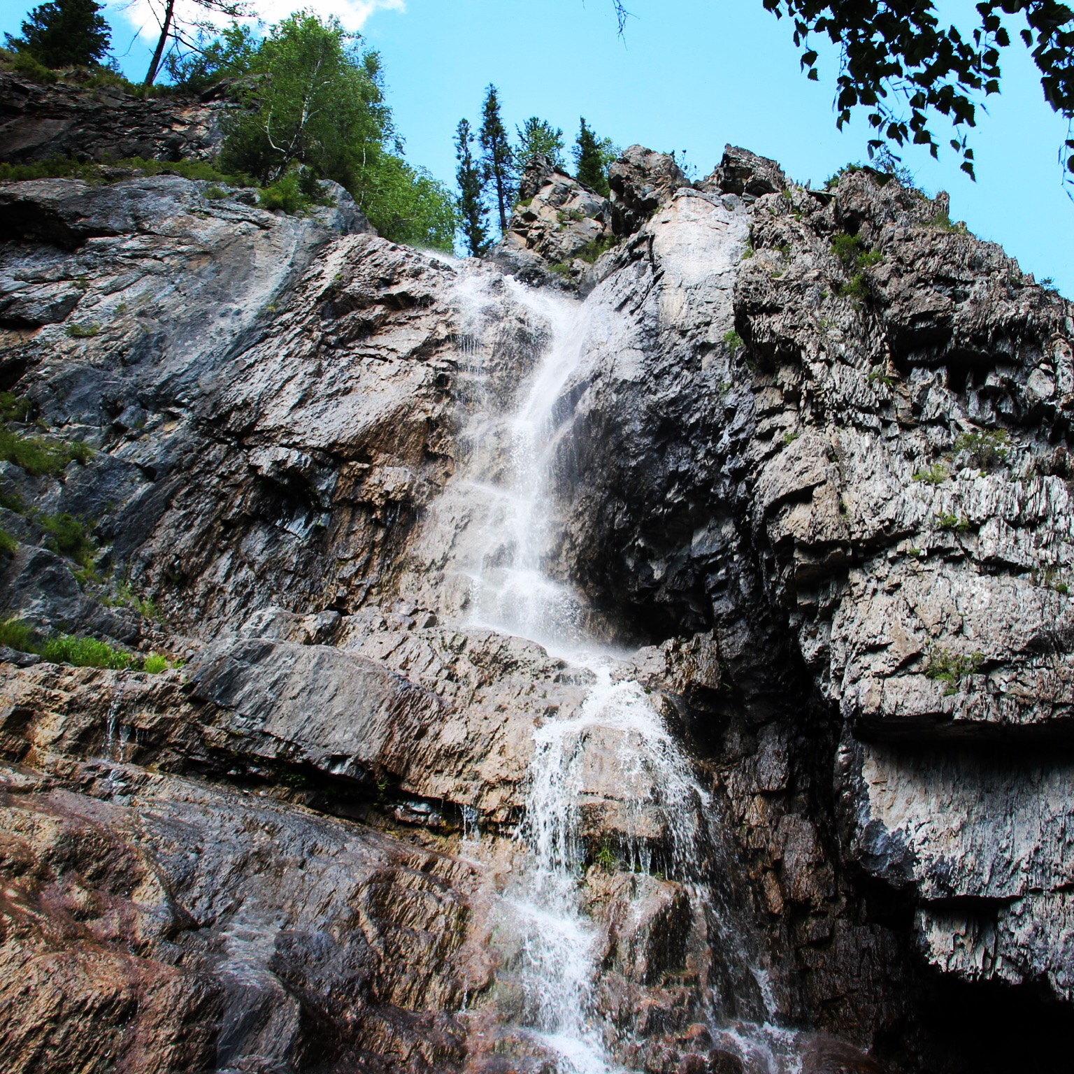 Выбрав удачный ракурс( низкую точку съёмки), вам удалось показать водопад более величественным, возвышающимся к небу.