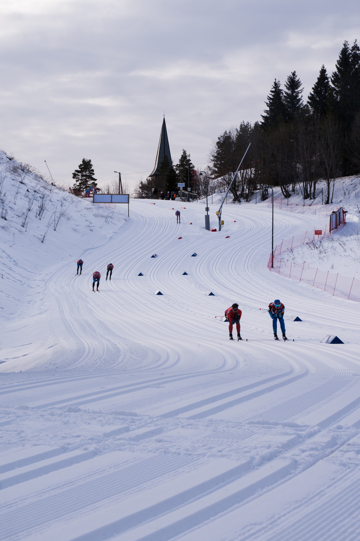 Очень хороший снимок! Вы совершенно верно обратили внимание на лаконичные следы от лыж на фактурной снежной поверхности! Они создают удачные визуальные направляющие от переднего плана к дальнему и наоборот, зритель легко и планомерно читает изображение. Кадр выглядит очень динамично. Присутствует спортивное настроение и зимняя атмосфера. Продолжайте в том же духе!