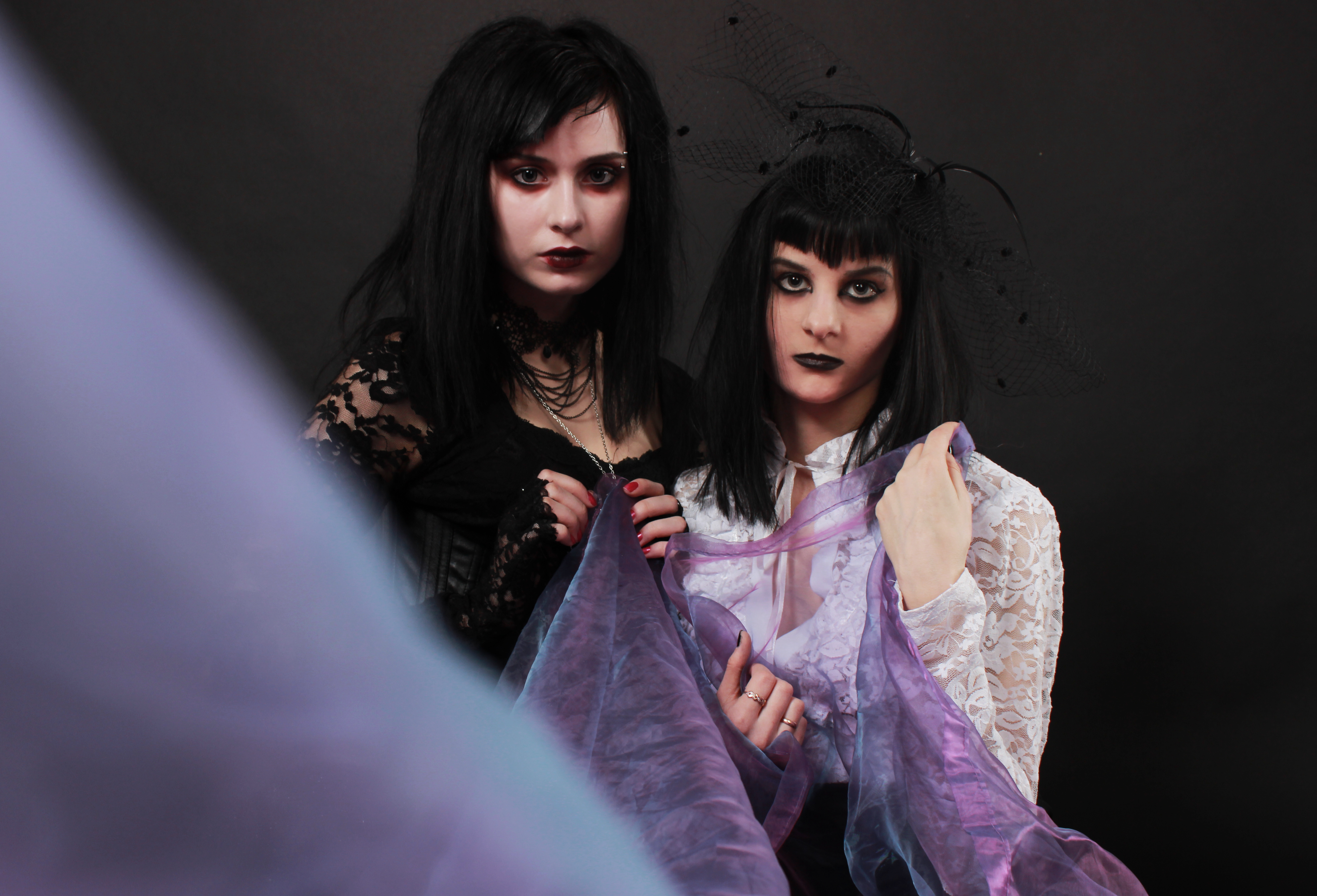 Темные волосы почти сливаются с таким же темным фоном(1). Для того, чтобы зрительно "отделить" девушек от фона советую использовать контровой свет.