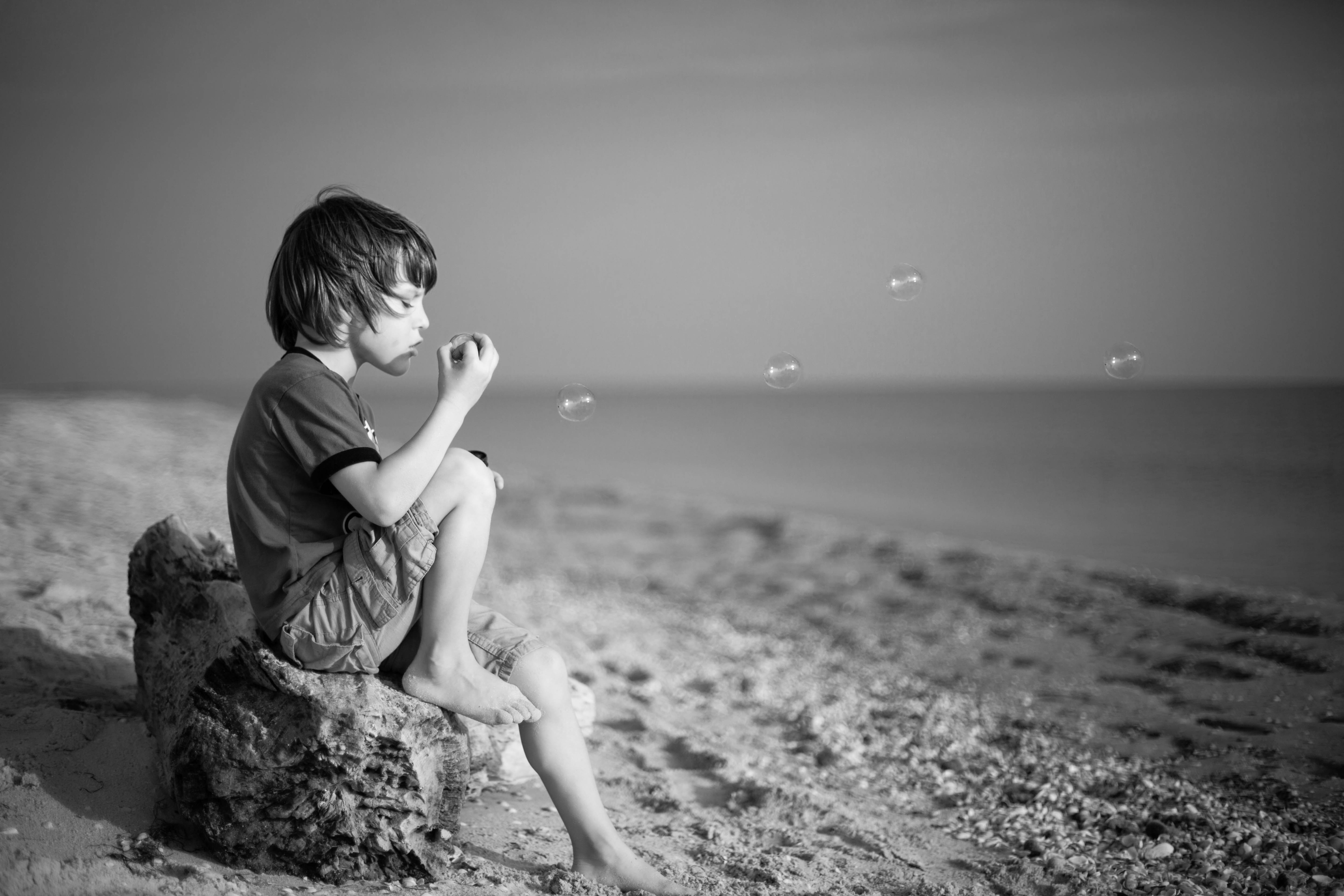 Мыльные пузыри выразительно читаются на однородном фоне! Оставлено пространство в направлении их полета. Фотография атмосферная.