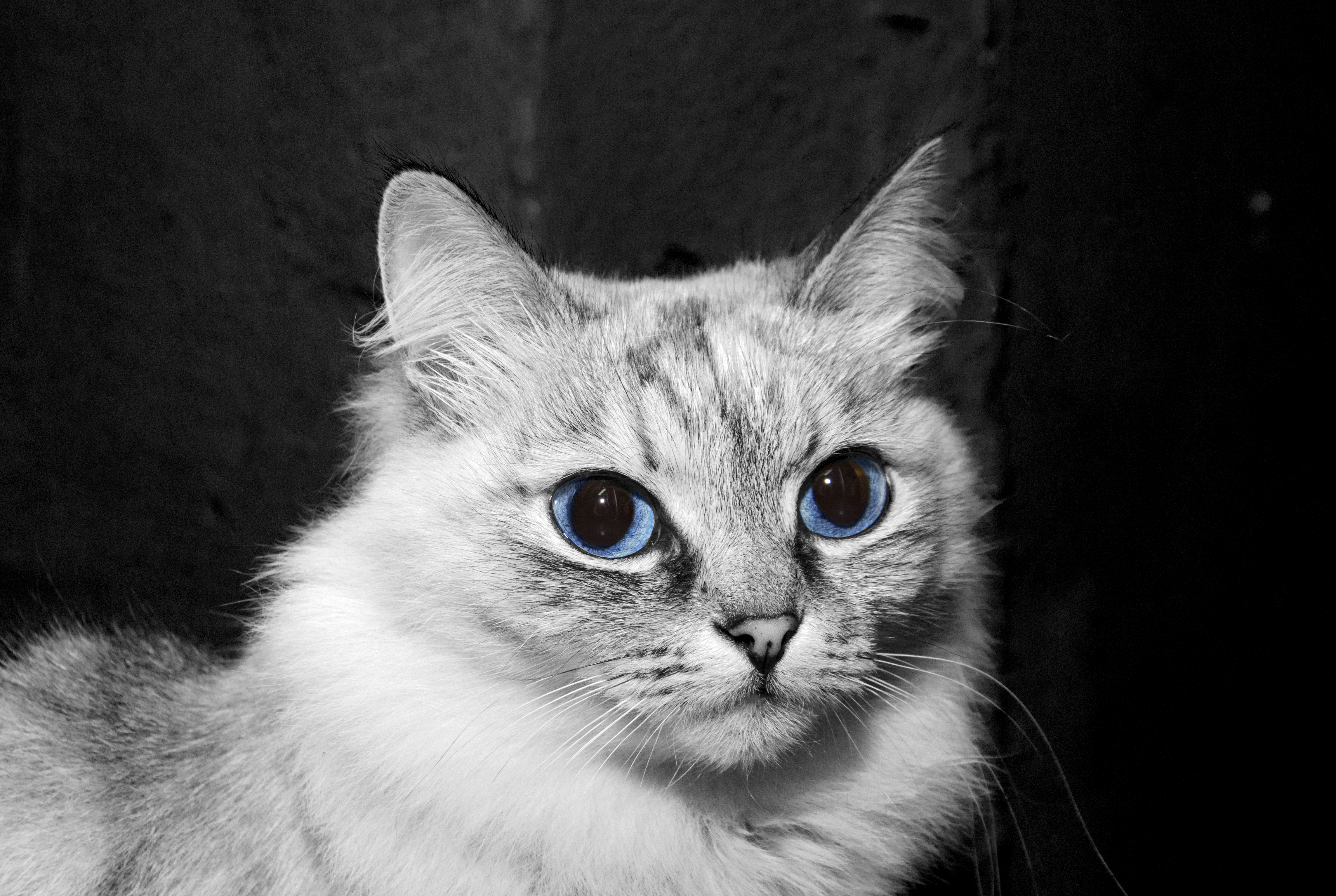 Очень хорошо получилось! Вы - молодец! Классно смотрится контрастный монохром! Эффектно выглядят голубые глаза животного! От обработки снимок совершенно точно выиграл!