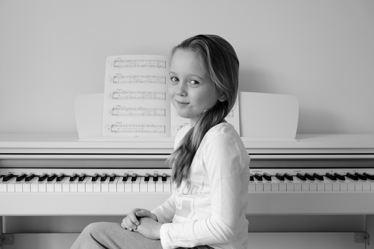 Пианистка. Кадр с атмосферой ) Оторвала юную пианистку от урока. Не совсем декорации, но девушка в образе. Не уверена насчет кадрирования. Хотела расположить модель на линии трети, но рисунок выходит геометричным, хочется ритма и симметрии. Свет слева, чуть перед моделью. Надеюсь, он получился "рисующим".