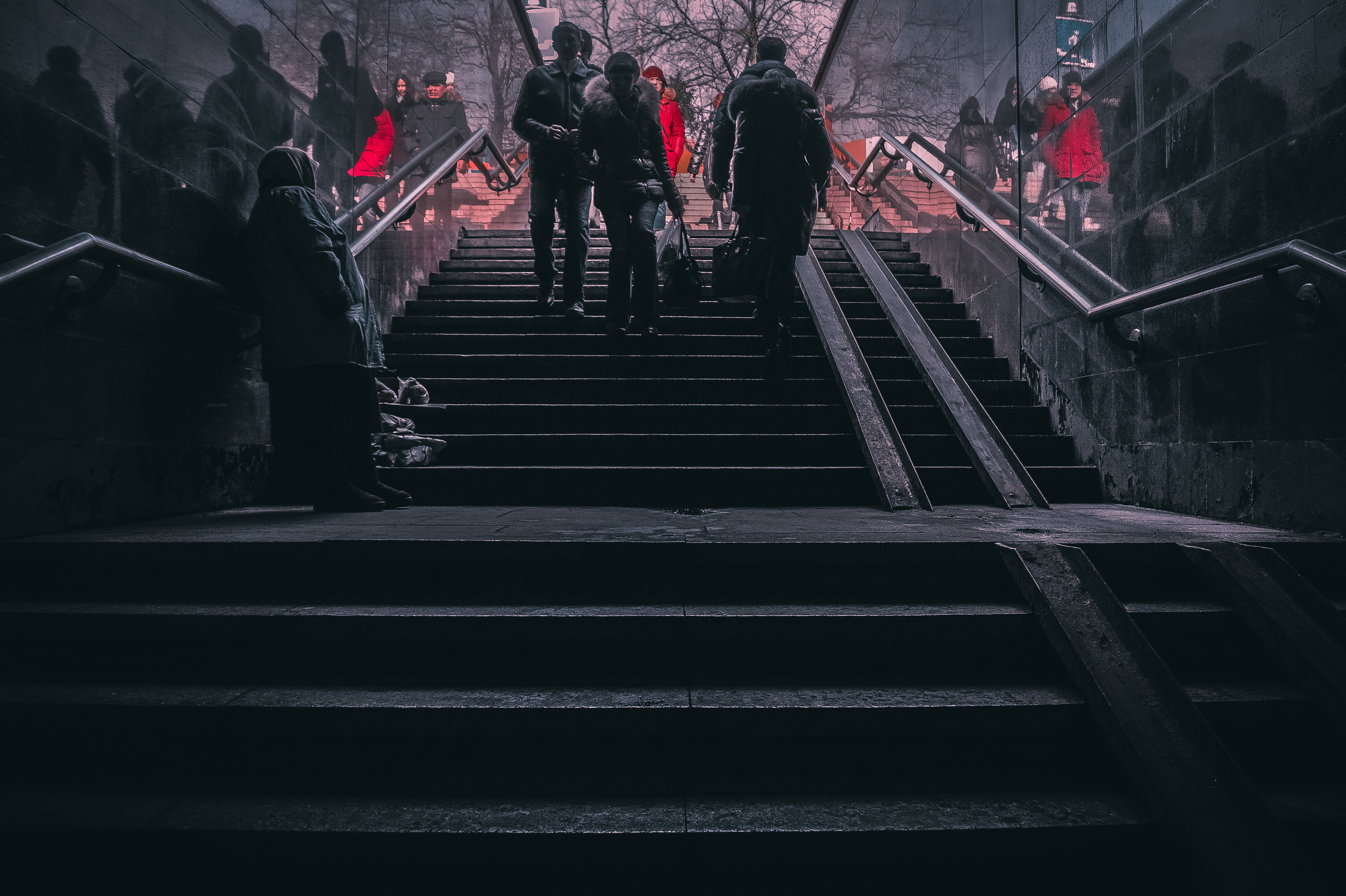 Идея снимка была в представлении движения одних людей и неподвижности других. Для этого был нужен штатив, которого с собой не оказалось( Но больше интересует правильность работы со светом в таких условиях.