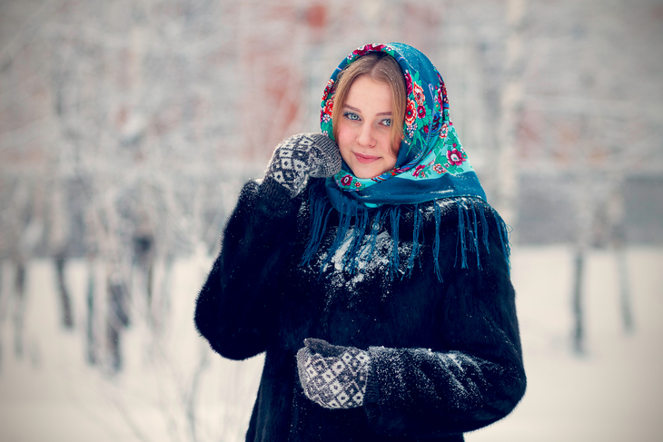 Замечательно подобрали фон, хотя здание и далеко от сказочного сюжета, но в размытии его активность снижена до неузнаваемости. При этом, видно, что вокруг заснеженные деревья, пейзаж очаровательный. Здорово припорошили снежком и саму портретируемую.