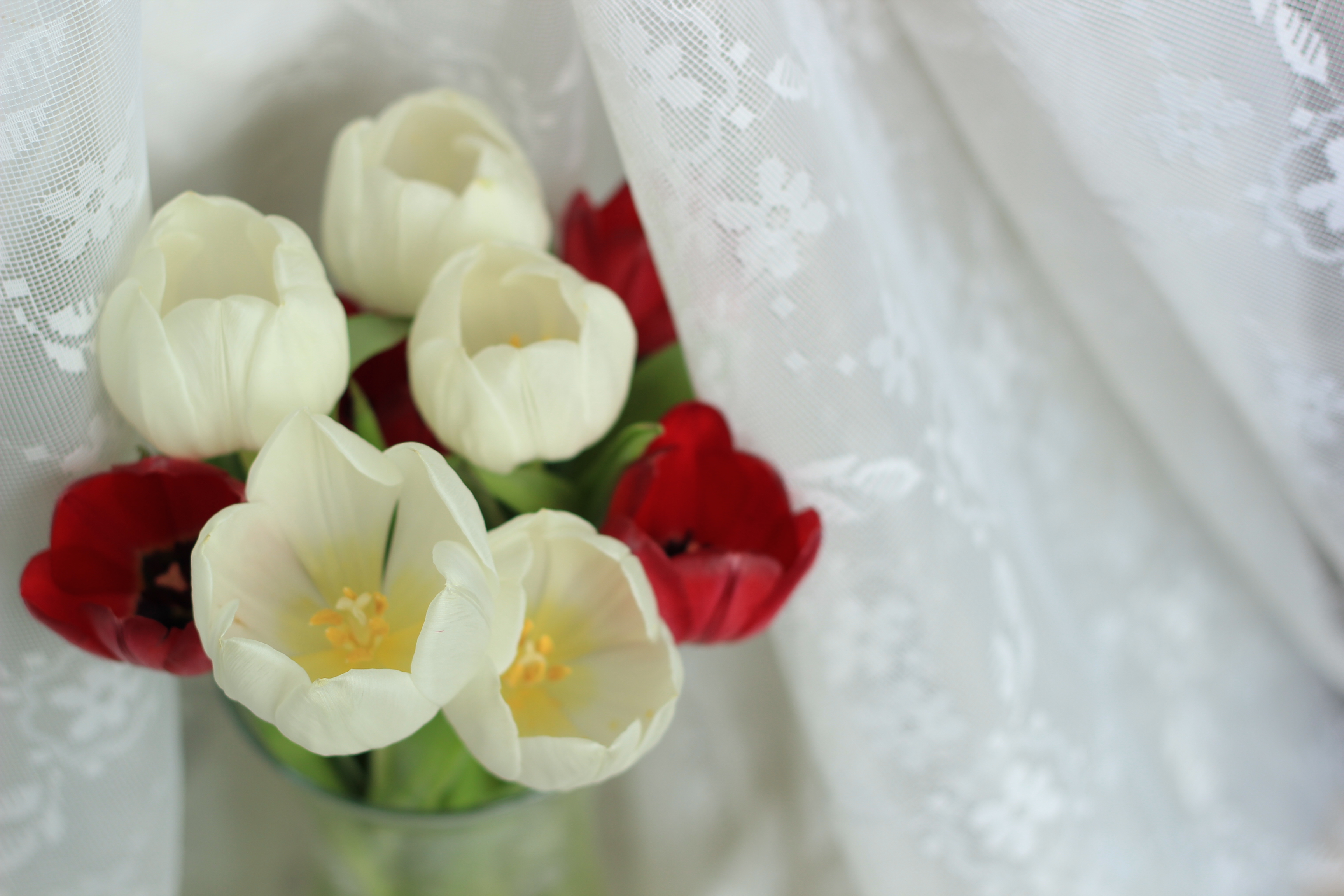 Замечательный снимок! Очень нежная работа, прекрасное сочетание цветов с кружевным фоном. Светлый фон достаточно нейтрален, поэтому яркие цветы отлично выделяются, к тому же, вы сделали на них акцент фокусом, уводя дальний план в небольшое размытие.