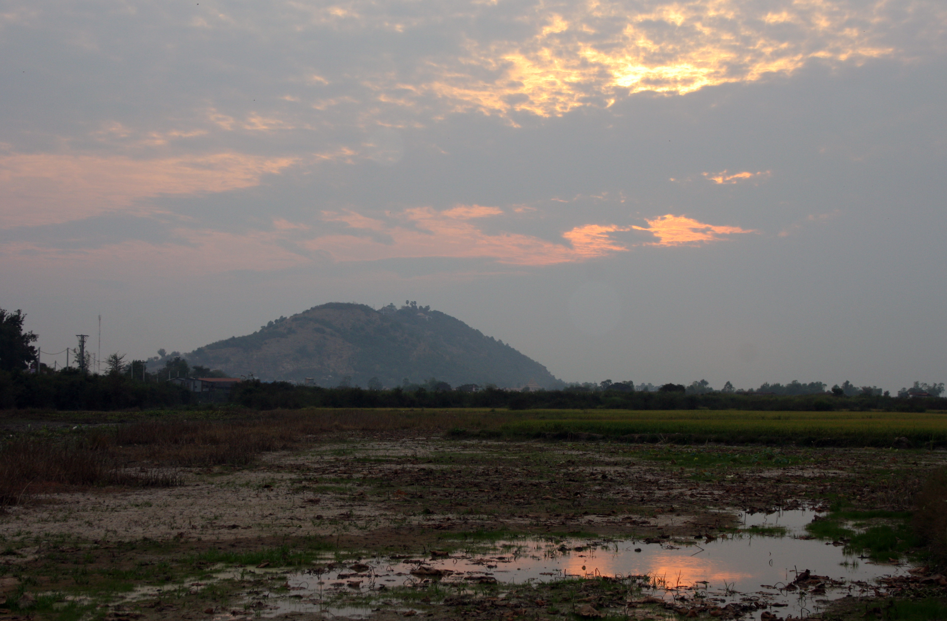 Очень красивый закатный пейзаж! Отлично удалось передать в кадре оттенок и фактуру неба. Эффектно смотрится тональная перспектива - гора на дальнем плане скрыта дымкой, потеряла контраст и за счет этого дальний план отделен от переднего, получилось передать объем.