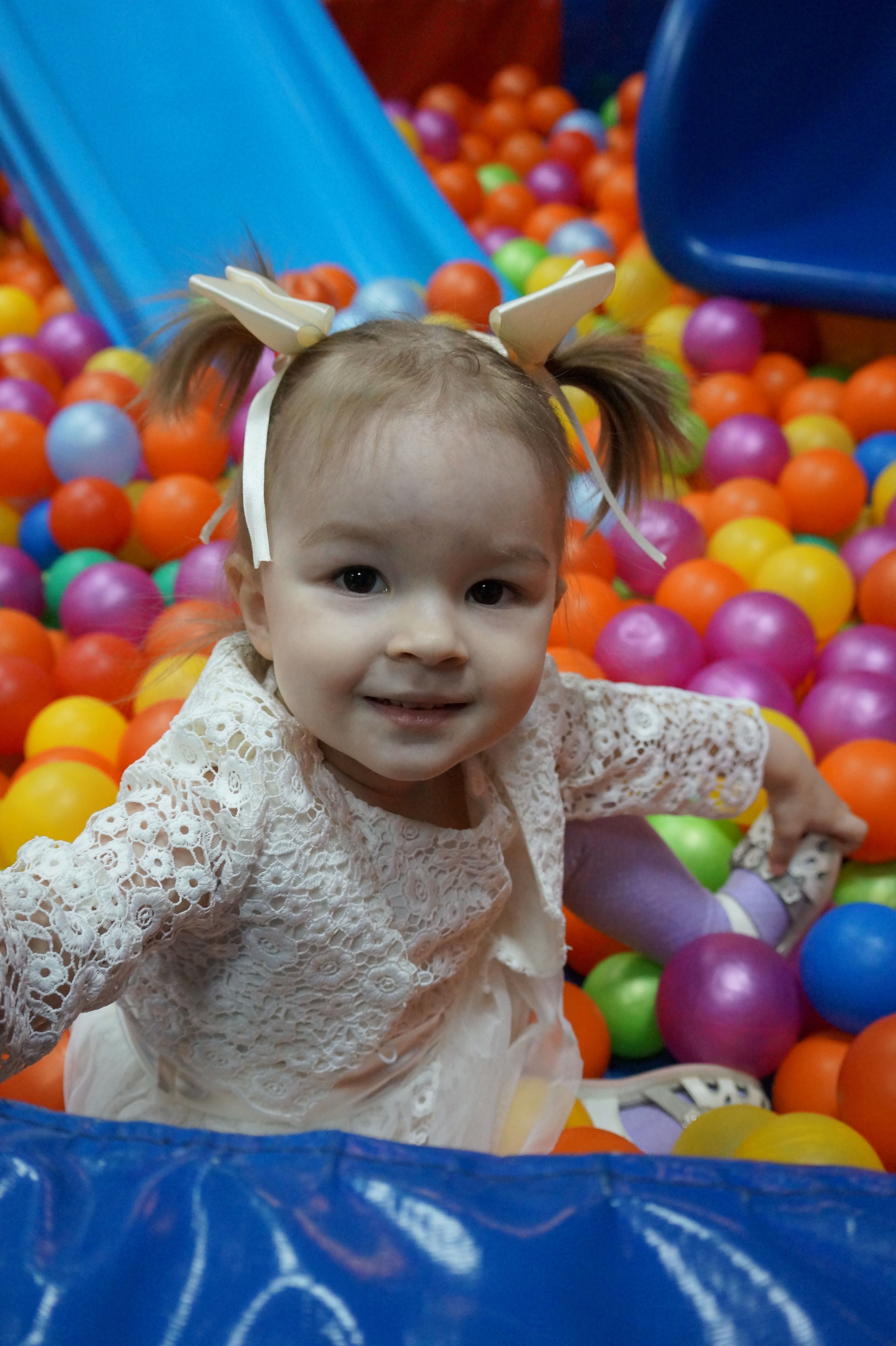 В таких сложных условиях, лучше брать выдержку под контроль, тем более детки не статичны, они постоянно крутятся, вертятся. При слабоосвещенных условиях, работайте в приоритете выдержки, выставляя ее знаменатель равный пятикратному фокусному расстоянию, а ИСО передавайте автоматике. Диафрагма контролироваться не будет, но , по умолчанию, мы знаем, что она будет стремиться к открытым значениям в таких условиях, что гарантирует оптический акцент на герое. На ярком солнышке же, снимаем в режиме приоритета диафрагмы.