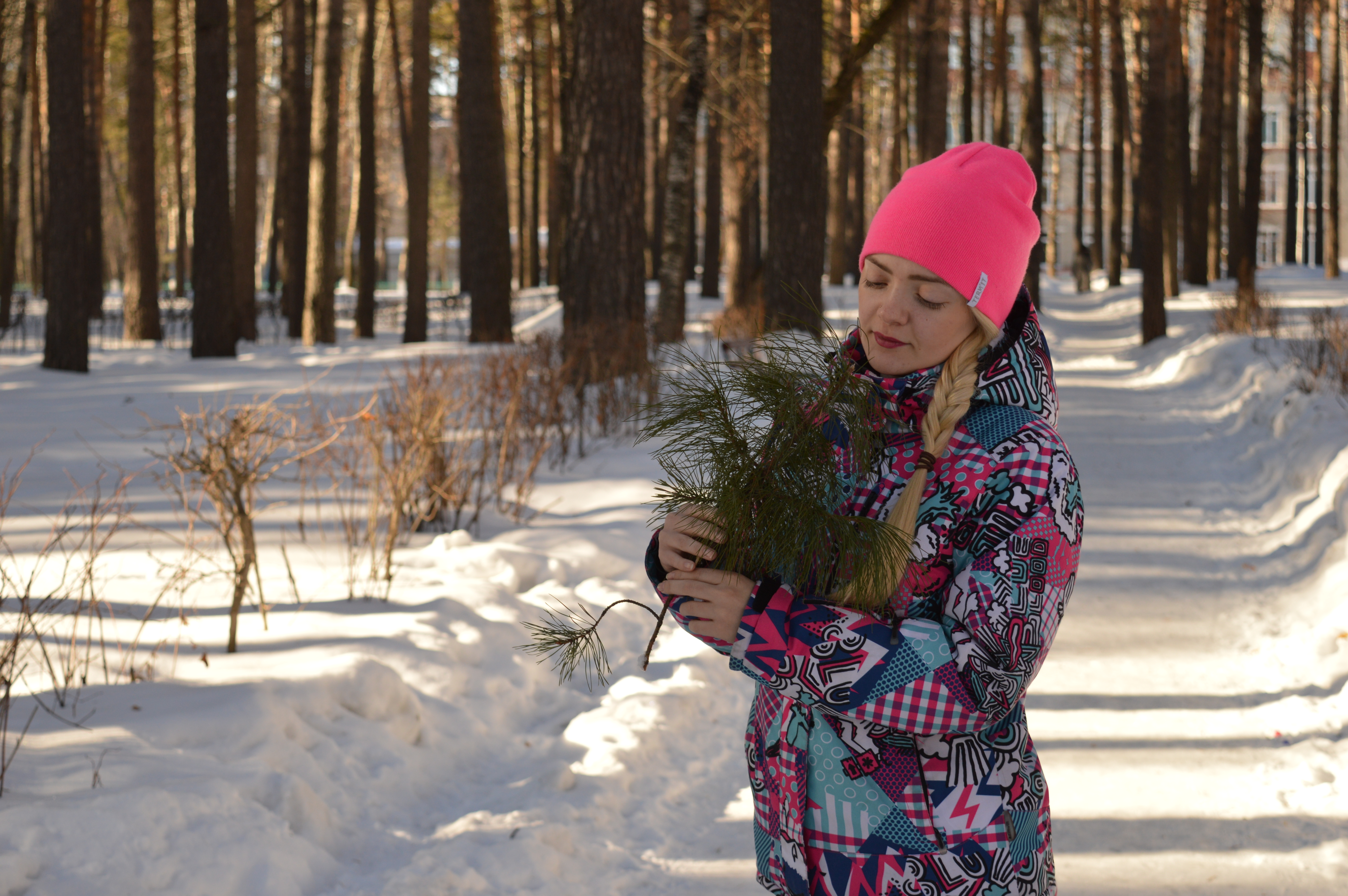 Хорошо подобрали параметры экспозиции. Диафрагма приоткрыта и фон за моделью получился размыт, это усиливает внимание на портрете. Камера точно сфокусирована на лице девушки. Яркая одежда отлично отделяет ее от фона!