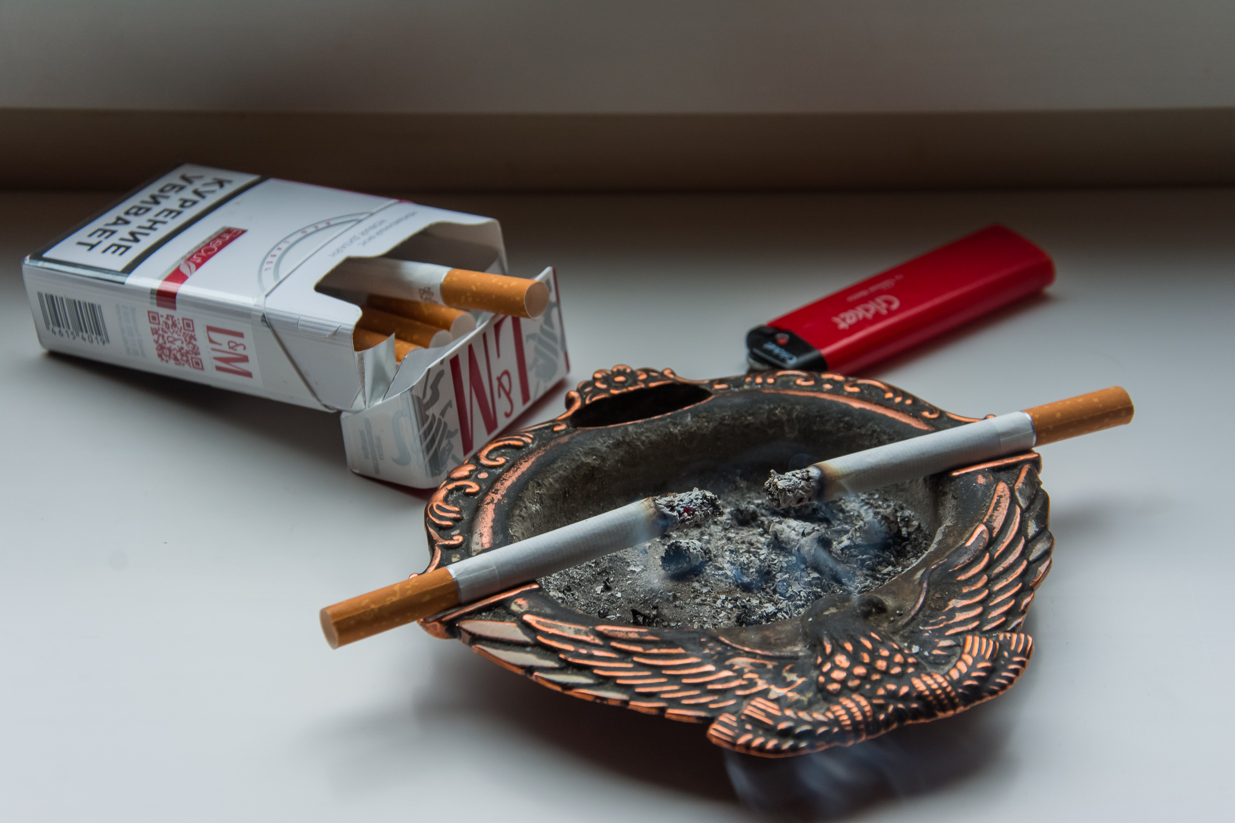 Пепельница создает центр композиции и размещена гармонично, по правилу третей.