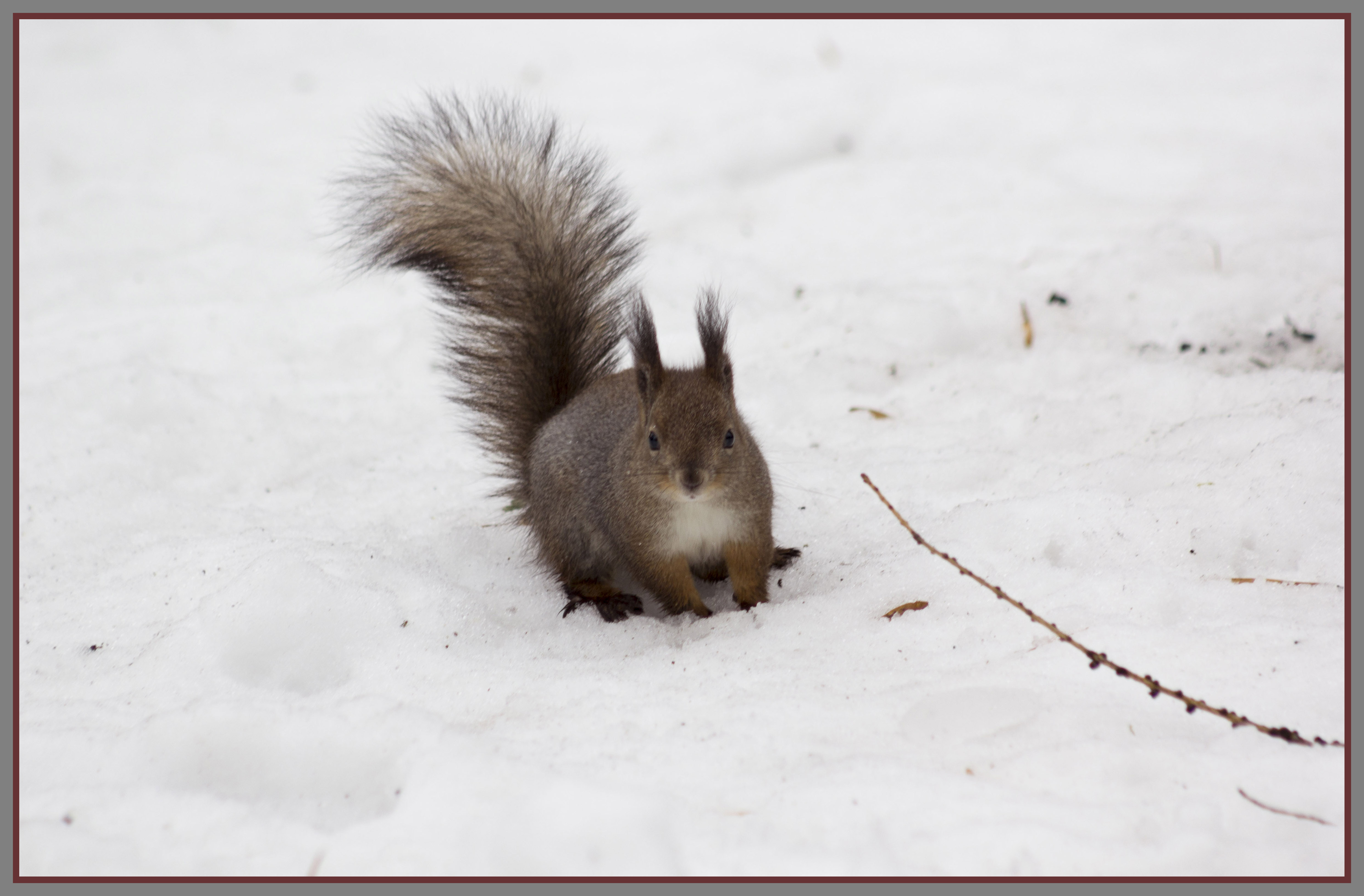 Красивая рамка получилась у вас :) Снимок достаточно лаконичный, поэтому красная полоска в сочетании с серой окантовкой смотрится уместно. И по ширине не перестарались, рамка не зажимает пространство фотографии.