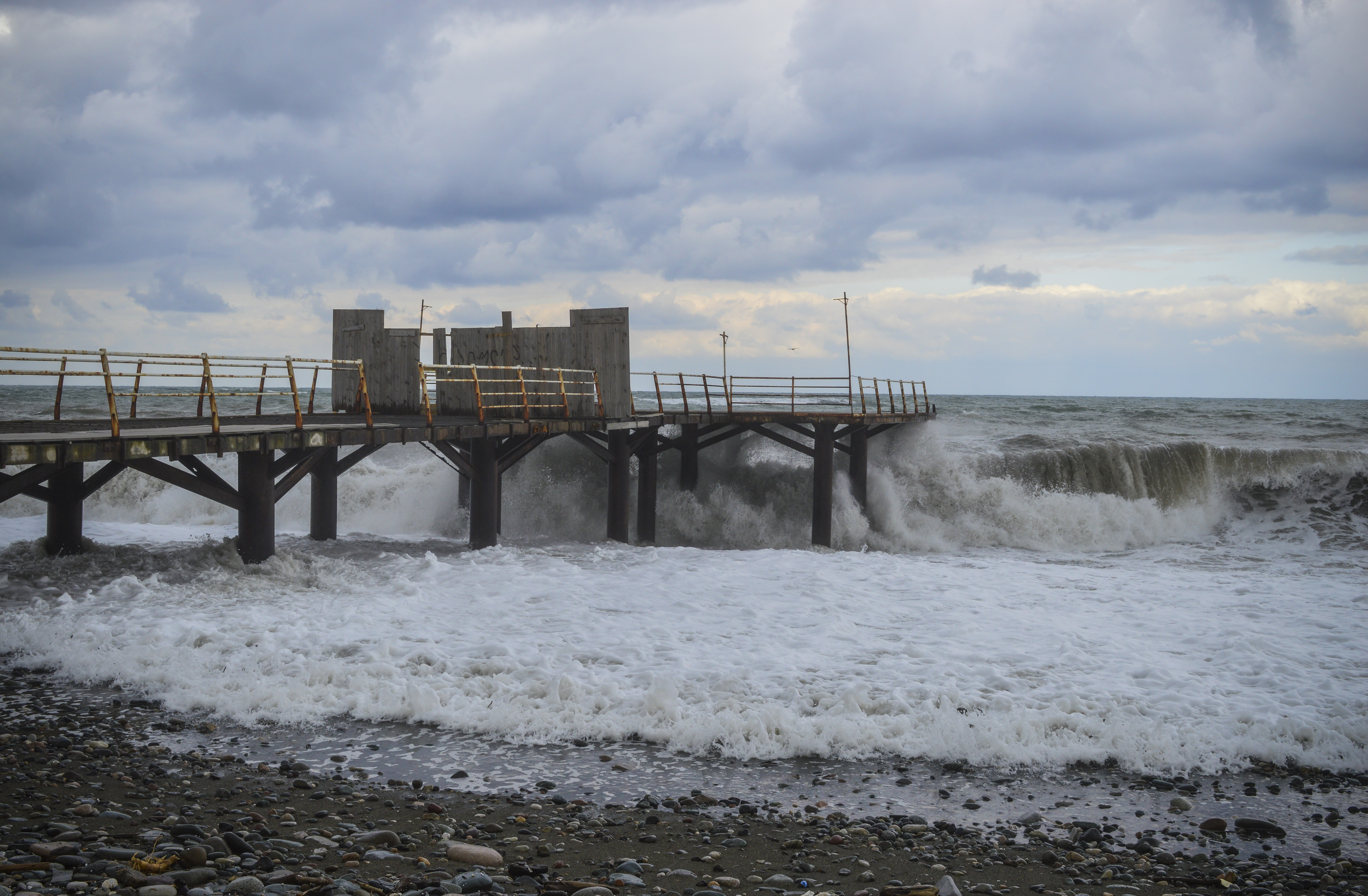 Сегодня повезло с погодой, шторм :) На снимке заброшенный пирс, который раньше был летним кафе.