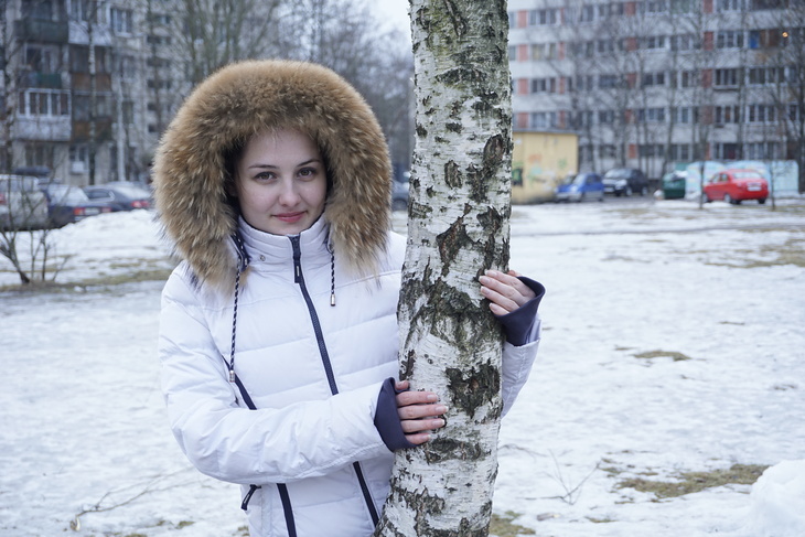 1 Пространство справа от девушки, за березкой менее активной, его можно не включать в изображение.