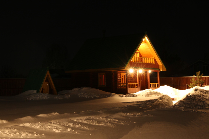 Свет прекрасный - и сугроб хорошо подсвечен - обыгран передний план. И домик светом прорисован.