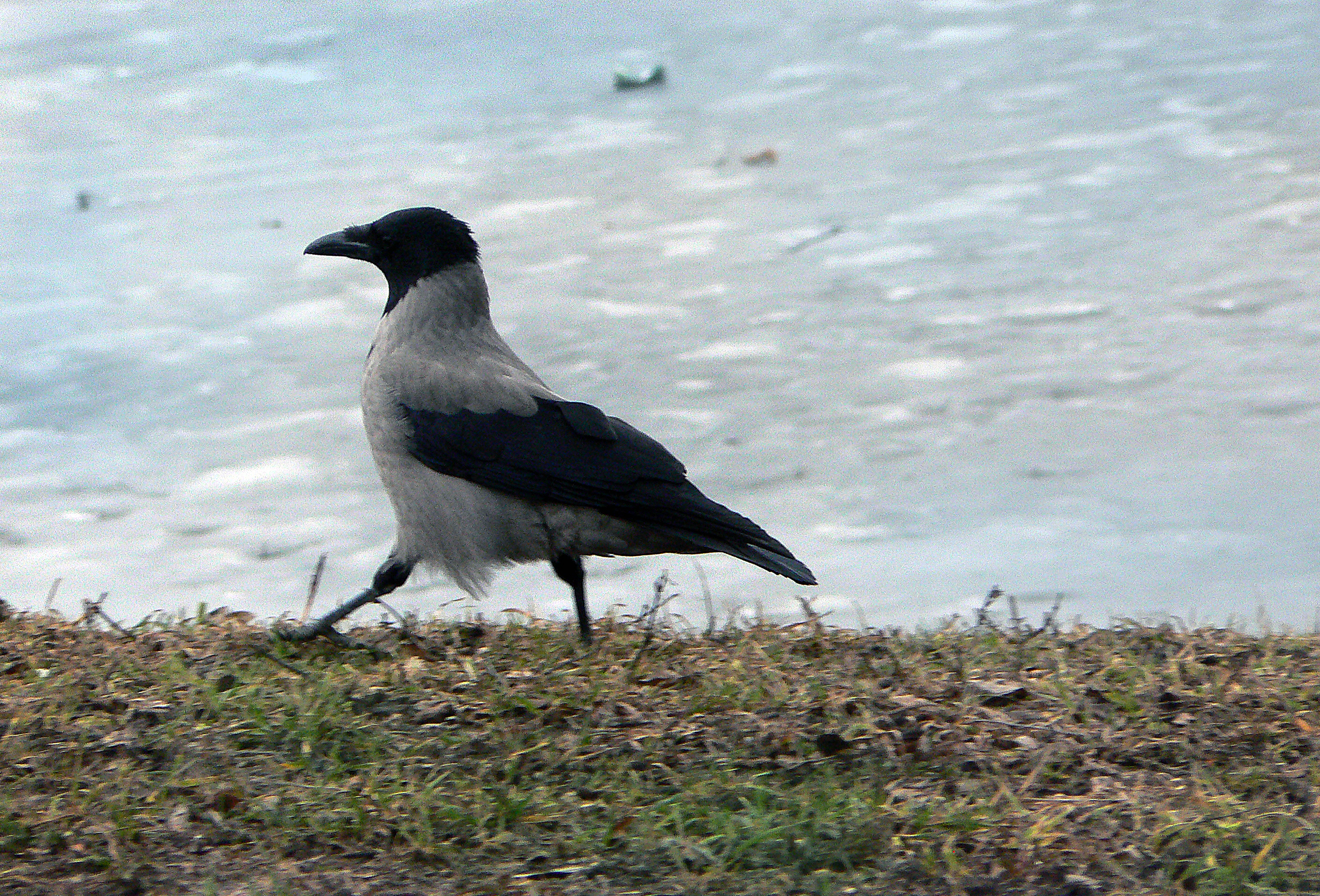 Кадр сделан во время прогулки в парке, на снимке изображена ворона. Спокойный пасмурный весенний день. Цвета спокойные, в основном в серой гамме. Главное на фото ворона. Видно, что птица гордо шагает по своим делам. Кадр динамичный и мне поднимает настроение.