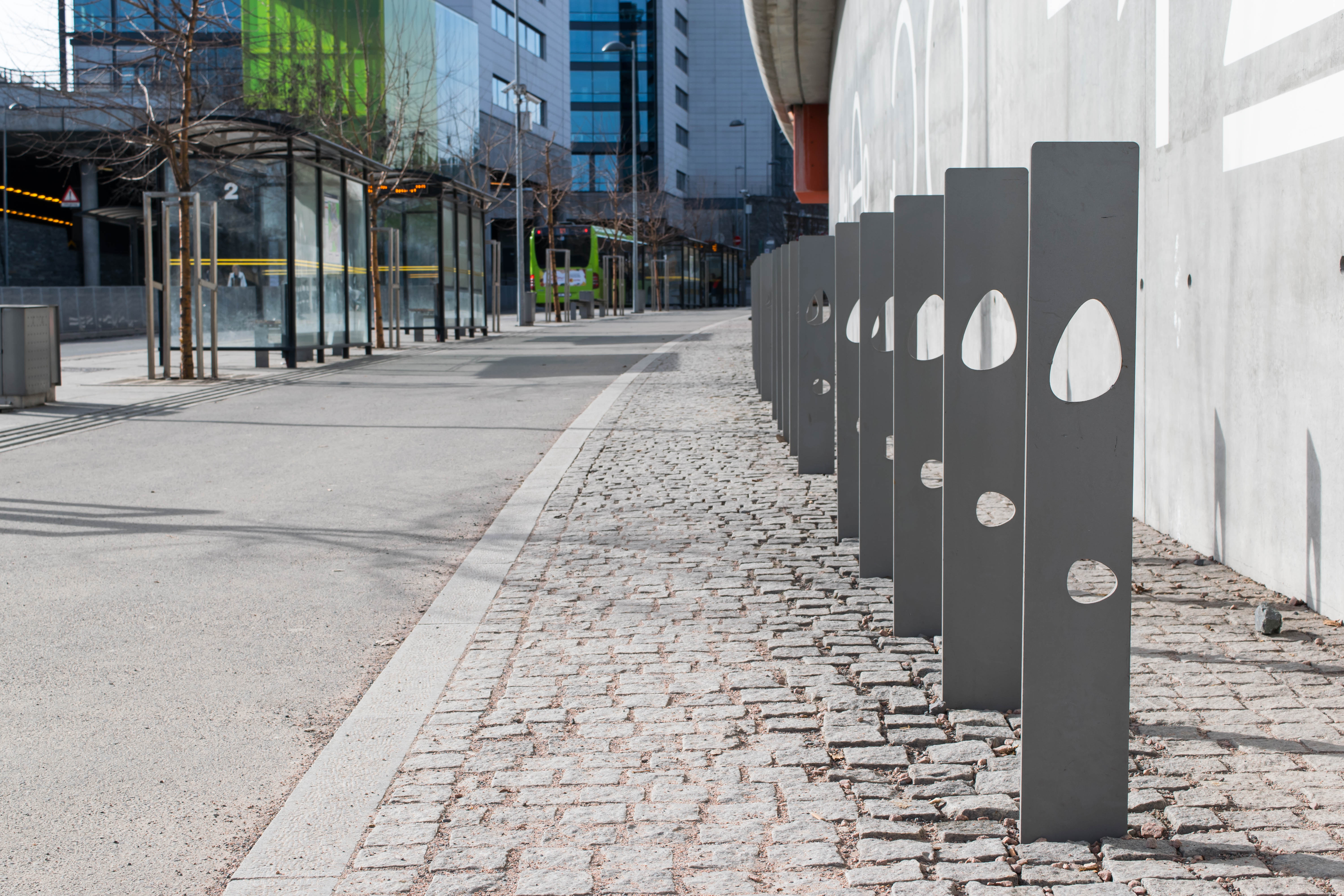 Немного пустоват левый нижний угол. Например, его может занимать какая-то интересная тень. Может, попробовать изменить первоначальную идею и не стремиться дать акцент на остановках, а сместить камеру значительно вправо, и больше показать стену с ее рисунком краской и тенями (не теряя при этом перспективу).