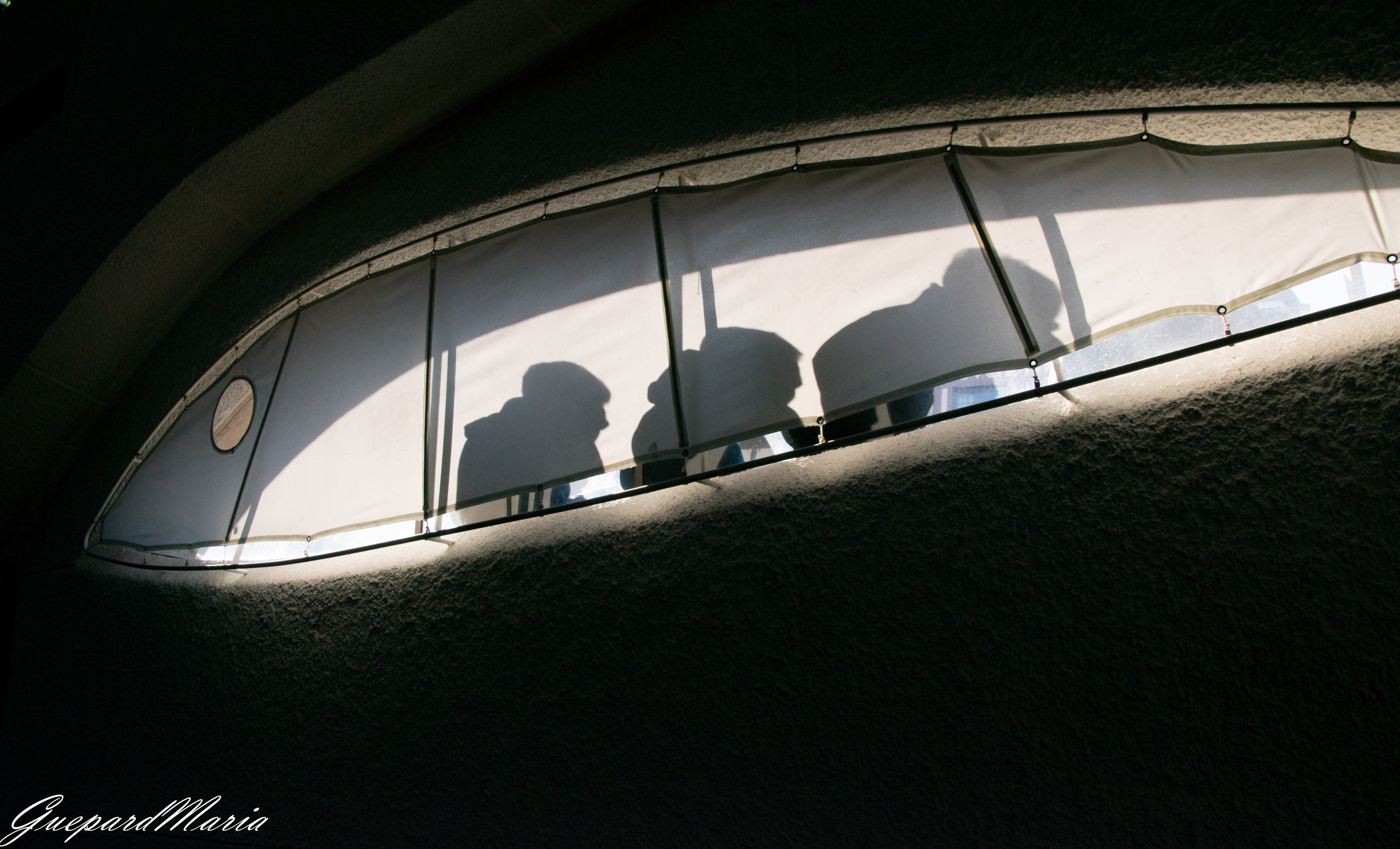 Окно-рыба. У одной церкви такие окна. Но здесь очень интересные тени, благодаря людям, которые сидят с другой стороны. И получаются люди в рыбе:)))) Кадр случайный. Но я была очень рада, когда увидела его. Со мной был профессиональный фотограф рядом, но он не увидел. Диагональ есть, немного обрезан хвост, но хвоста нет на самом деле, и нравится что на чёрном фоне белая рыба. Дальше, если присмотреться там есть окошечко внутри. В окне рыбе отражается ещё окошечко какого-то дома напротив, сквозь человека. Я не знаю, для меня это чудо. Хотя многие не считают так. Есть ритм определённый.